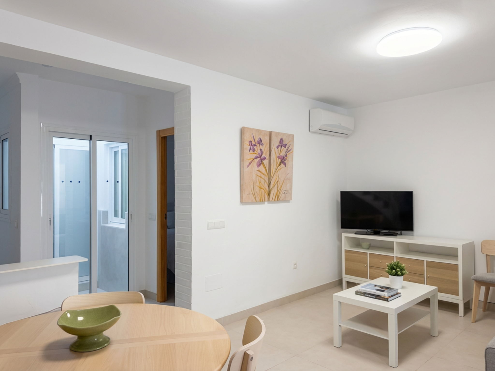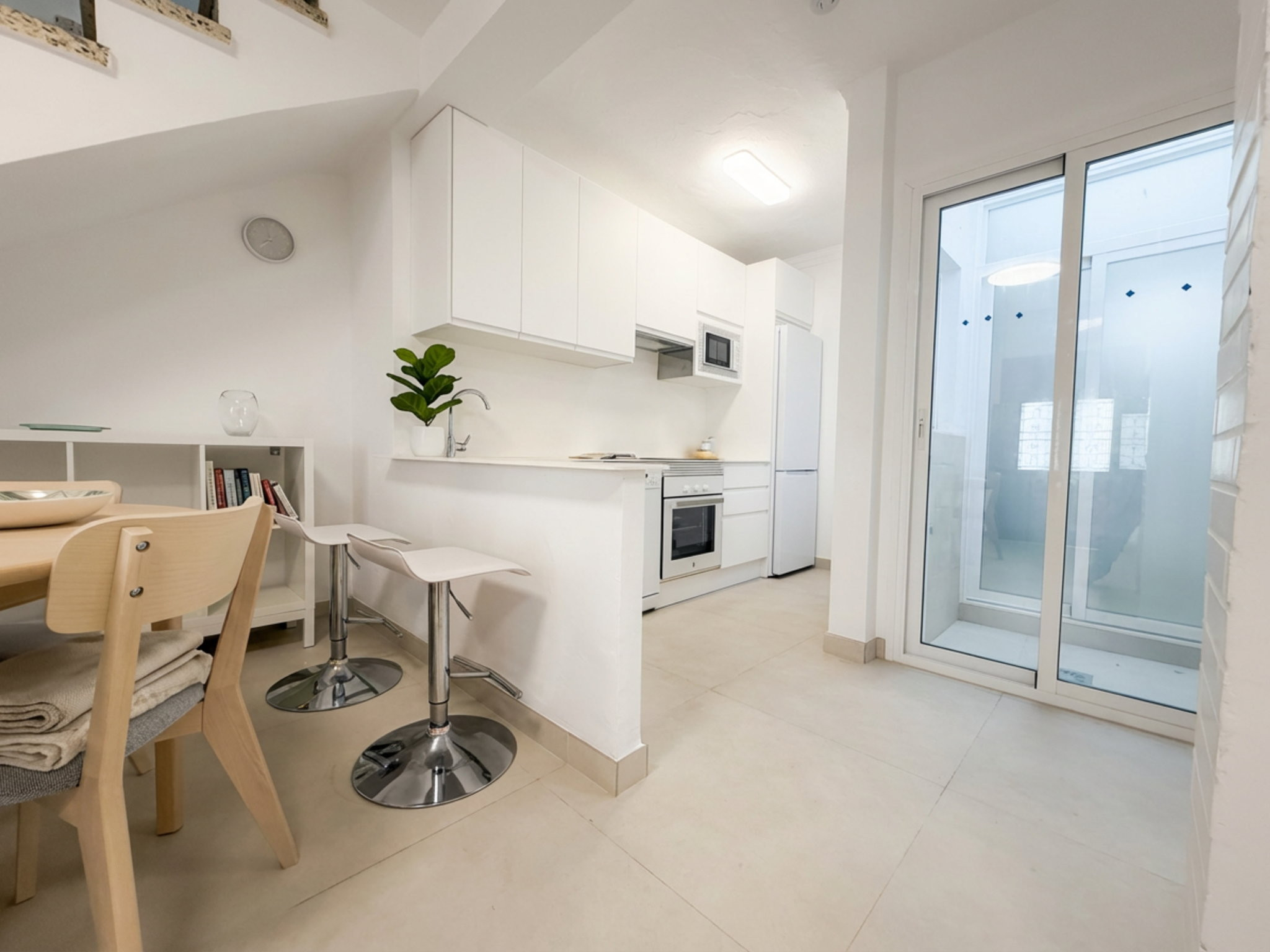Obwohl ihr Name Casa Chica (kleines Haus) lautet, bieten die hohen Decken und die kürzlich erfolgte Kernsanierung einen großzügigen und modernen Raum mitten im Zentrum. Beim Betreten des Hauses empfängt Sie ein offener Wohnbereich mit Smart-TV und eine voll ausgestattete, offen gestaltete Küche – ideal für alle, die in Ruhe frühstücken möchten, bevor sie die Umgebung erkunden. Das Beste daran ist, dass das Erlebnis direkt vor der Haustür beginnt: Sie müssen nur hinausgehen und erreichen in weniger als 10 Minuten den Balcón de Europa oder die berühmtesten Buchten von Nerja. So genießen Sie den Komfort, alles in Reichweite zu haben, ohne auf ein Fahrzeug angewiesen zu sein.
