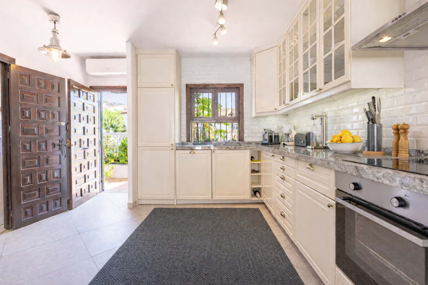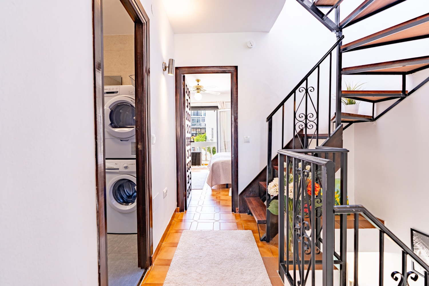 Dieses Reihenhaus in der Wohnanlage La Hacienda ist eine der besten Optionen für einen Urlaub in Nerja. Dank der privilegierten Lage im Parador-Viertel genießen Sie Blick auf das Mittelmeer und den Komfort, nur 350 m vom Strand Burriana entfernt zu sein. Das Anwesen besticht durch eine gepflegte Einrichtung im andalusischen Stil und bietet Ruhe direkt am Meer, ohne auf die Annehmlichkeiten des Zentrums von Nerja verzichten zu müssen.Aufteilung und Kapazität für 6 Personen