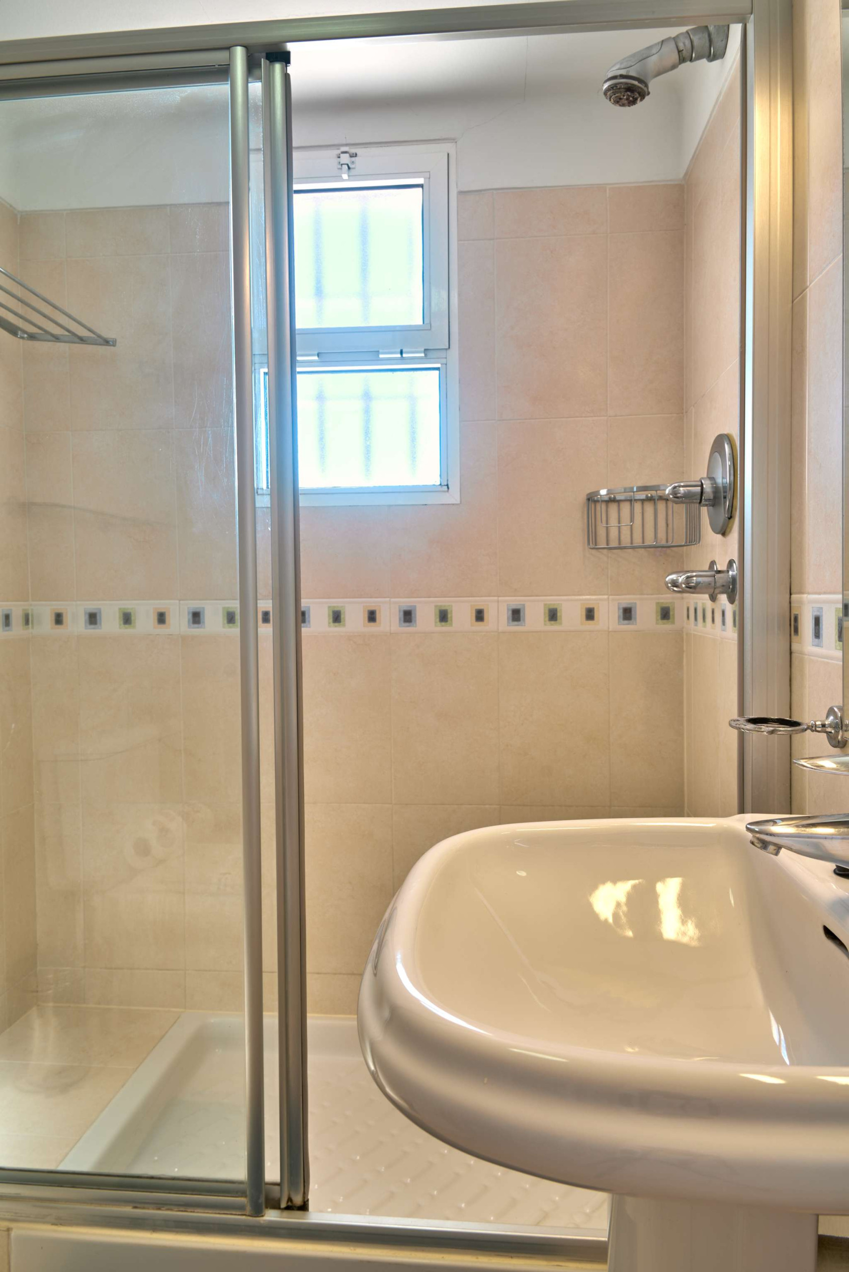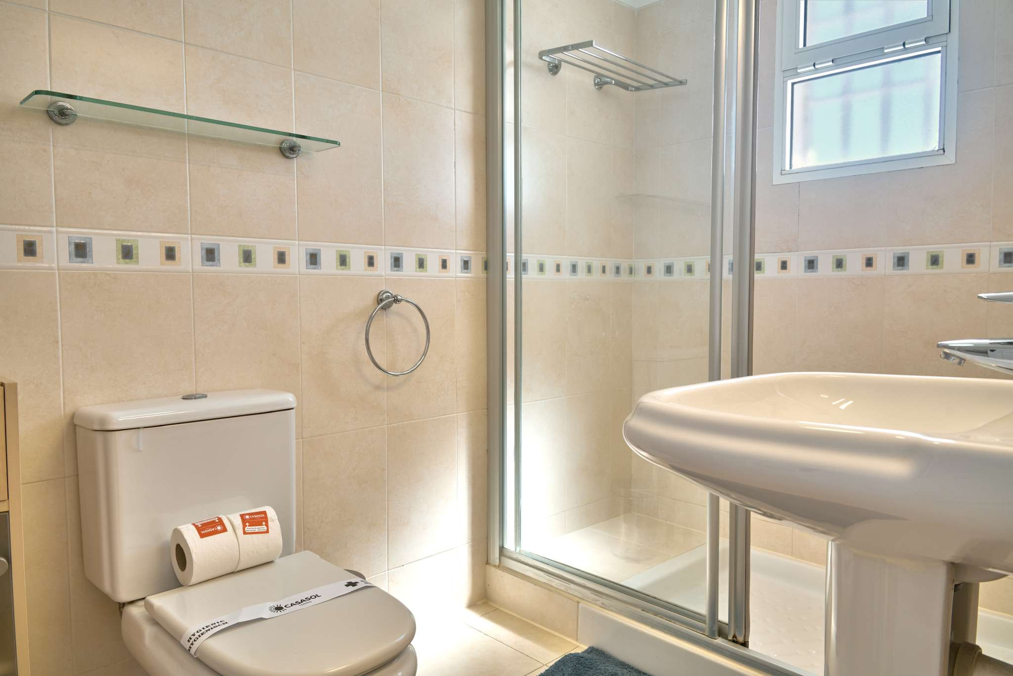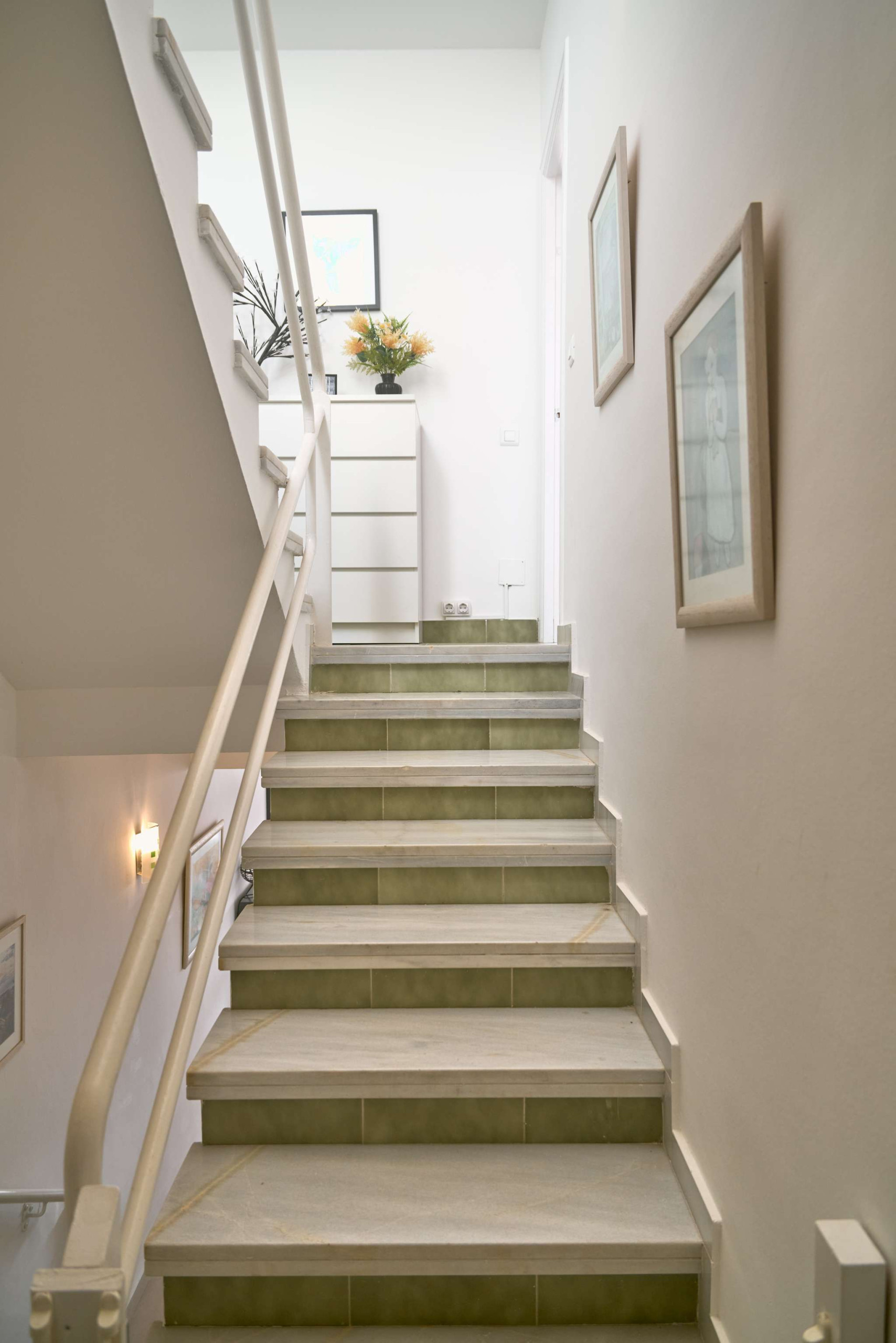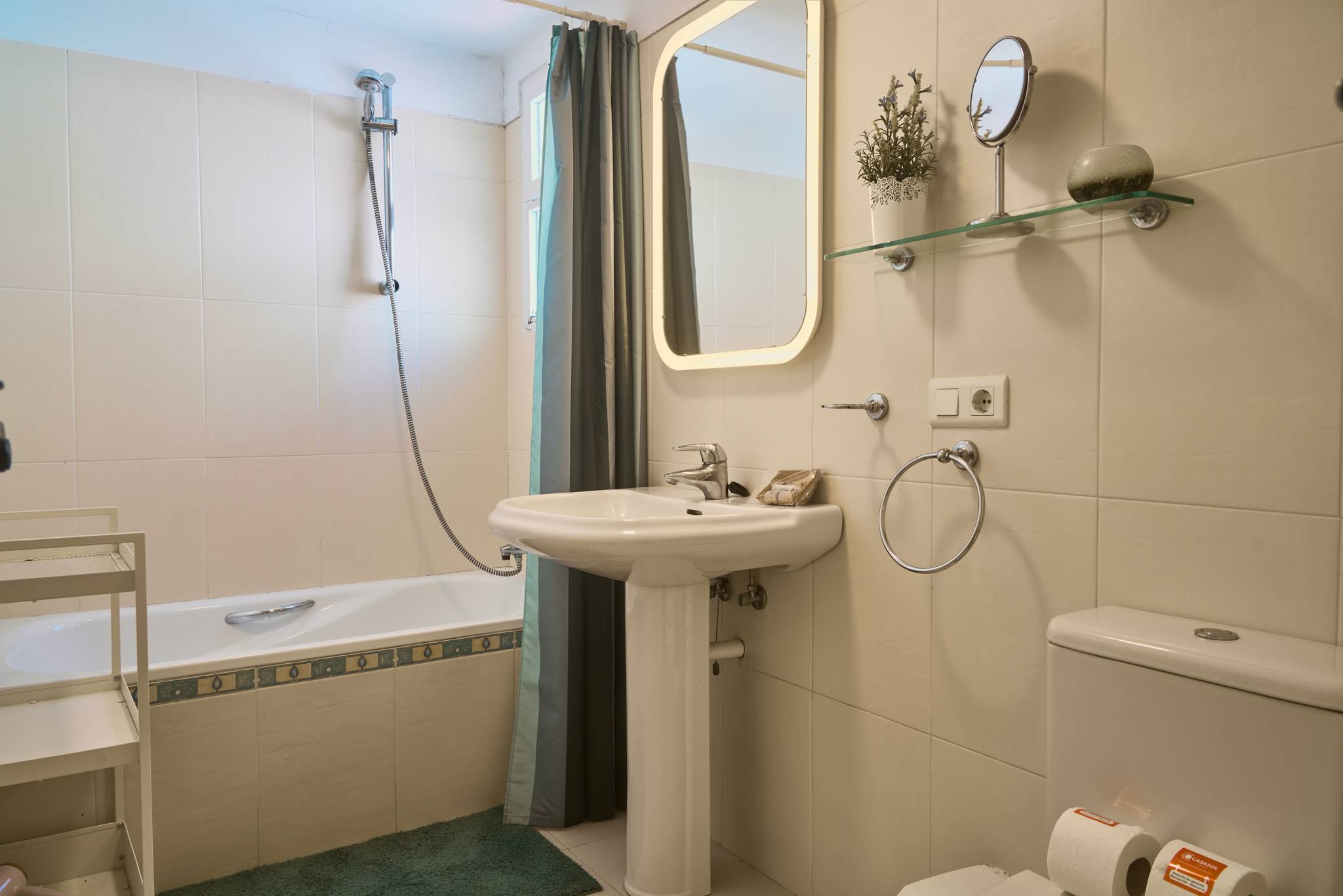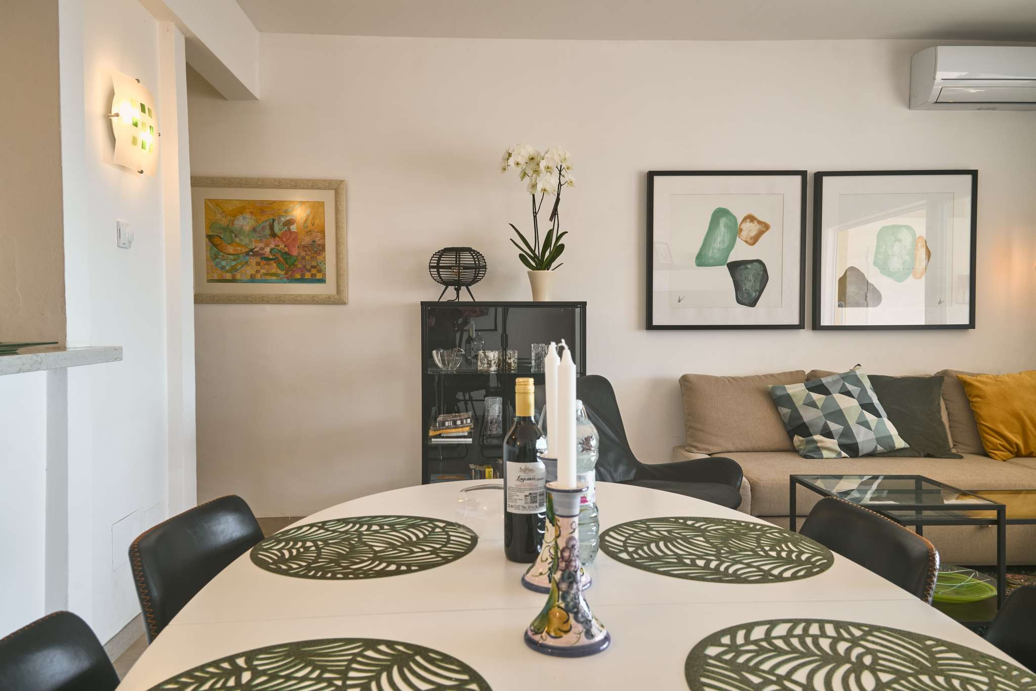 Die Wohnung ist effizient aufgeteilt, um ihren 4 Bewohnern Privatsphäre zu bieten. Auf der unteren Etage finden Sie ein geräumiges Wohn-Esszimmer mit direktem Zugang zur Hauptterrasse sowie eine Küche mit Geschirrspüler, Mikrowelle und allen notwendigen Utensilien für längere Aufenthalte. Diese Etage verfügt über ein Schlafzimmer mit zwei Einzelbetten und ein Badezimmer mit Dusche. Eine Ebene höher befindet sich das Hauptschlafzimmer mit Doppelbett, privatem Badezimmer und einem separaten Balkon, sodass jedes Paar oder Familienmitglied seinen eigenen Rückzugsort hat.Terrassen auf mehreren Ebenen und privates Solarium