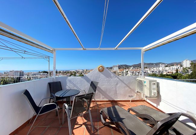 Sehr schönes 2 Schlafzimmer Reihenhaus, 80 qm mit Dachterrasse und herrlichem Blick über den Poolbereich, das Meer, die Stadt und die Berge. Casa Ekman Casasol ist eines der 27 Häuser in der Urbanisation Fuentesol in Nerja. Das klimatisierte Haus ist neu renoviert und für maximalen Komfort eingerichtet. 27 Häuser in dieser charmanten kleinen typisch spanischen Urbanisation teilen sich den fantastischen Gemeinschaftspool.