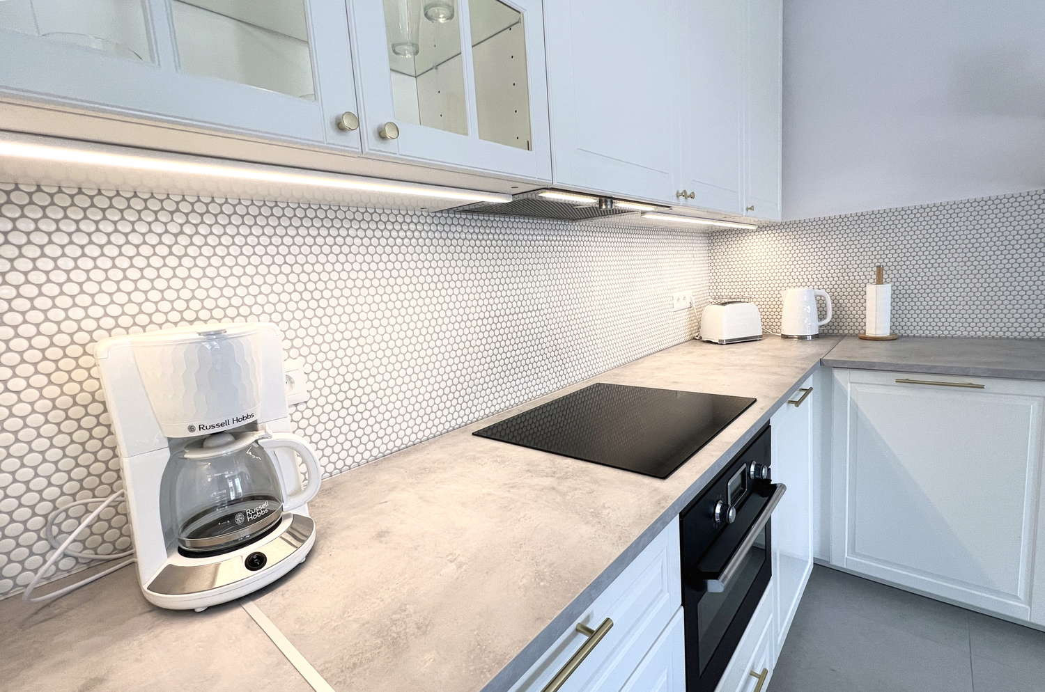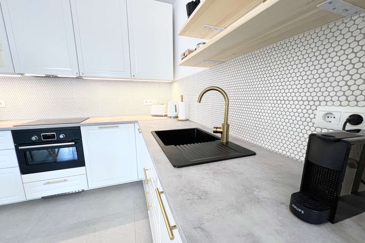 Küche und Ausstattung: Moderne, voll ausgestattete Küche mit aktuellen Geräten, ideal, um während Ihres Aufenthalts bequem Mahlzeiten zuzubereiten.