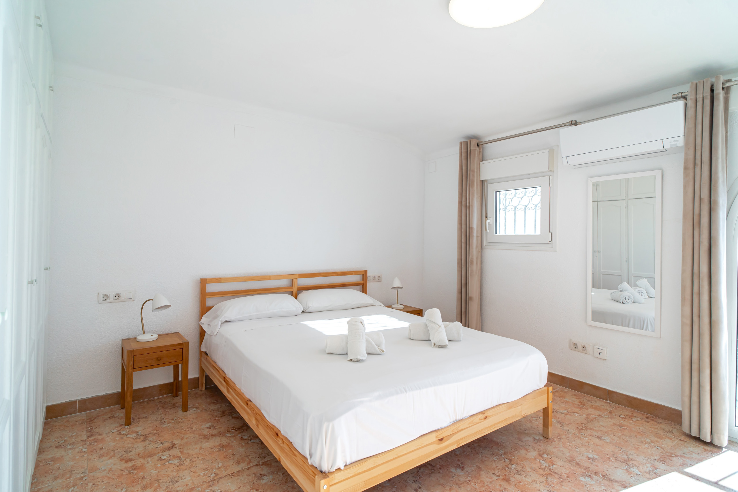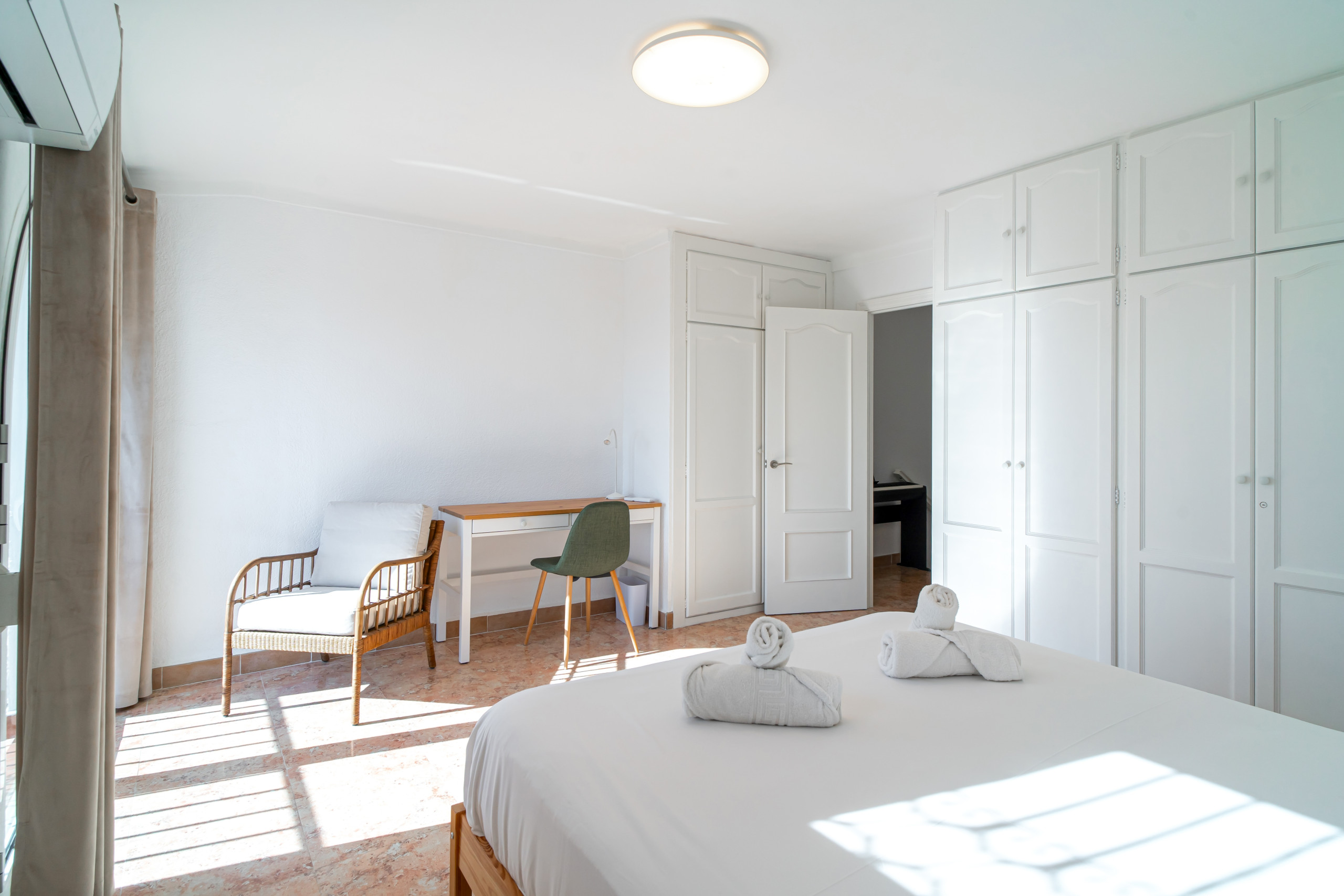 ✨ Hauptschlafzimmer mit Queensize-Bett (160x200), Einbauschrank, Schreibtisch und Meerblick.