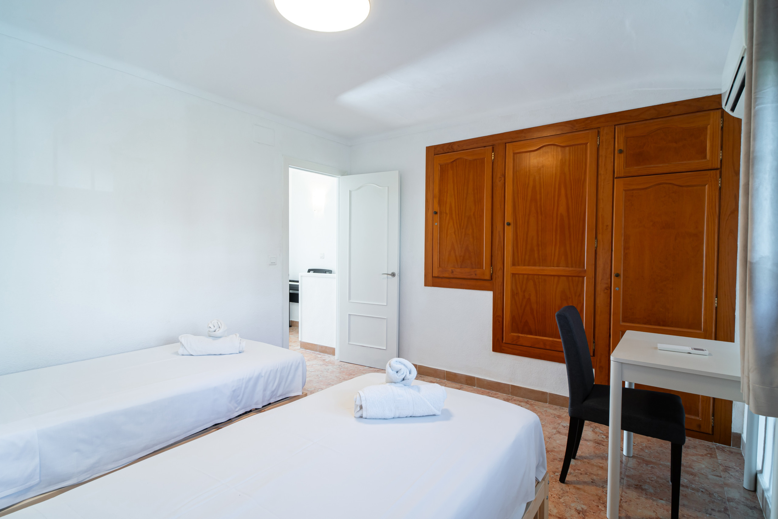 ✨ Zweites Schlafzimmer mit zwei Einzelbetten (90x200), Einbauschrank und Schreibtisch.