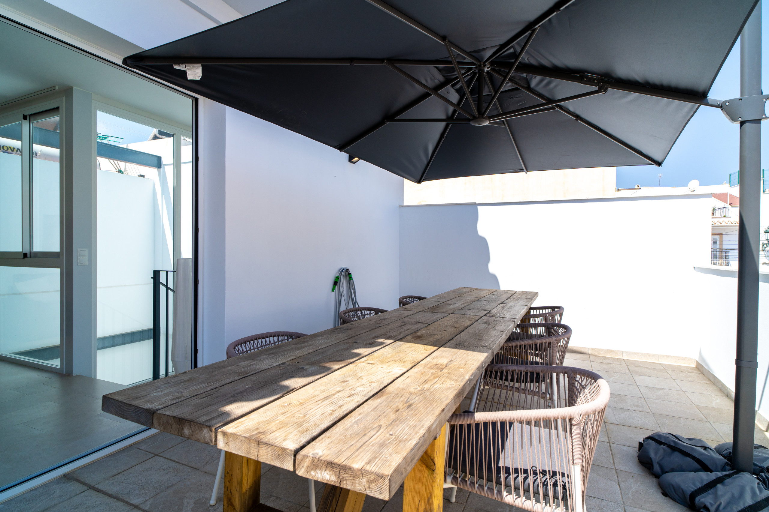 • Erste Terrasse (30 m²) mit Esstisch im Freien – ideal für Mahlzeiten im Freien mit Familie und Freunden