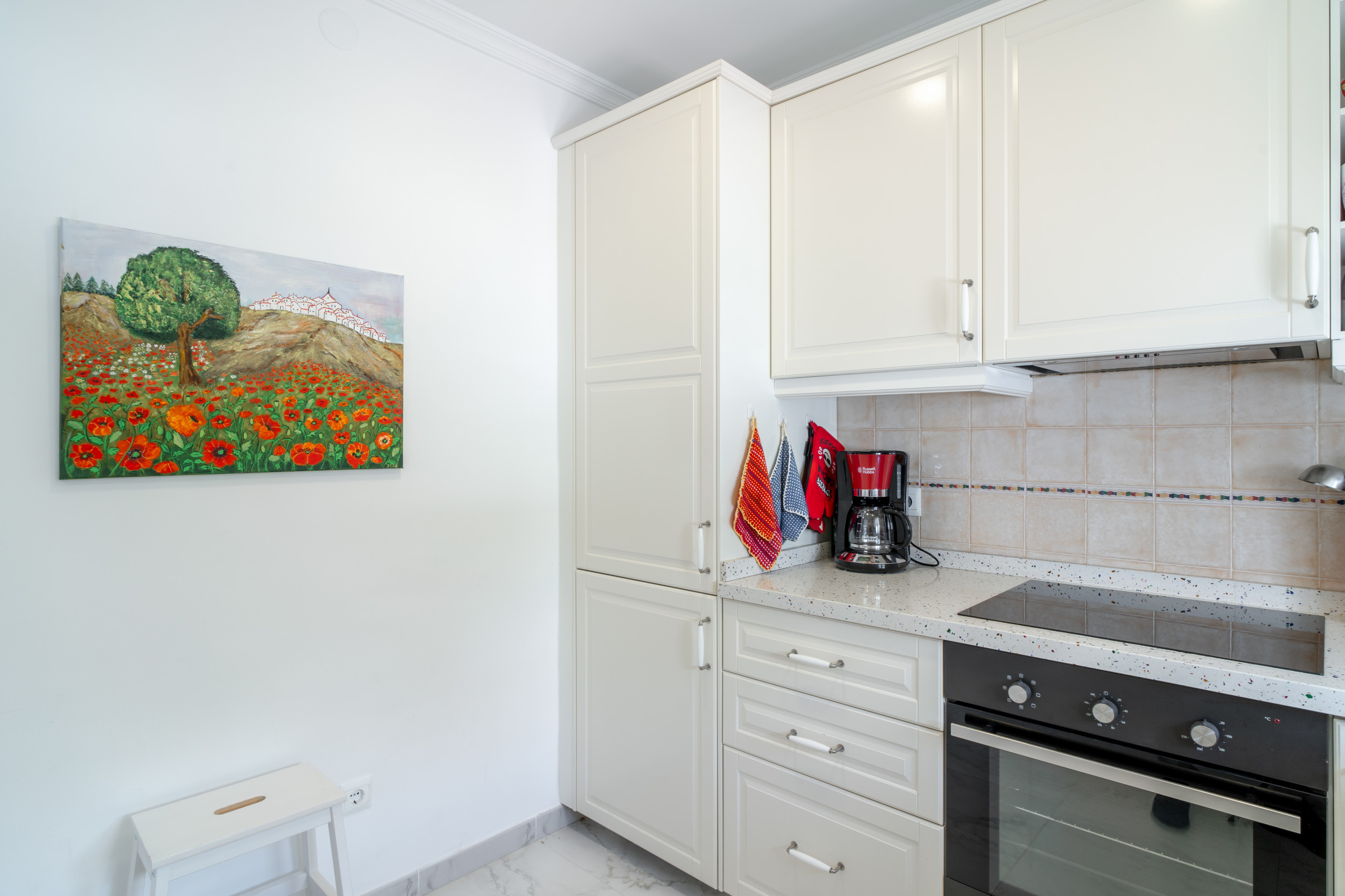 Darüber hinaus verfügt es über Annehmlichkeiten wie Fernsehen, Grill, Zugang von der Lounge-Terrasse zu einem Gemeinschaftspool, High-Speed-Internet und Klimaanlage. Die voll ausgestattete Küche ist ideal für diejenigen, die während ihres Aufenthalts gerne kochen und Mahlzeiten zubereiten.