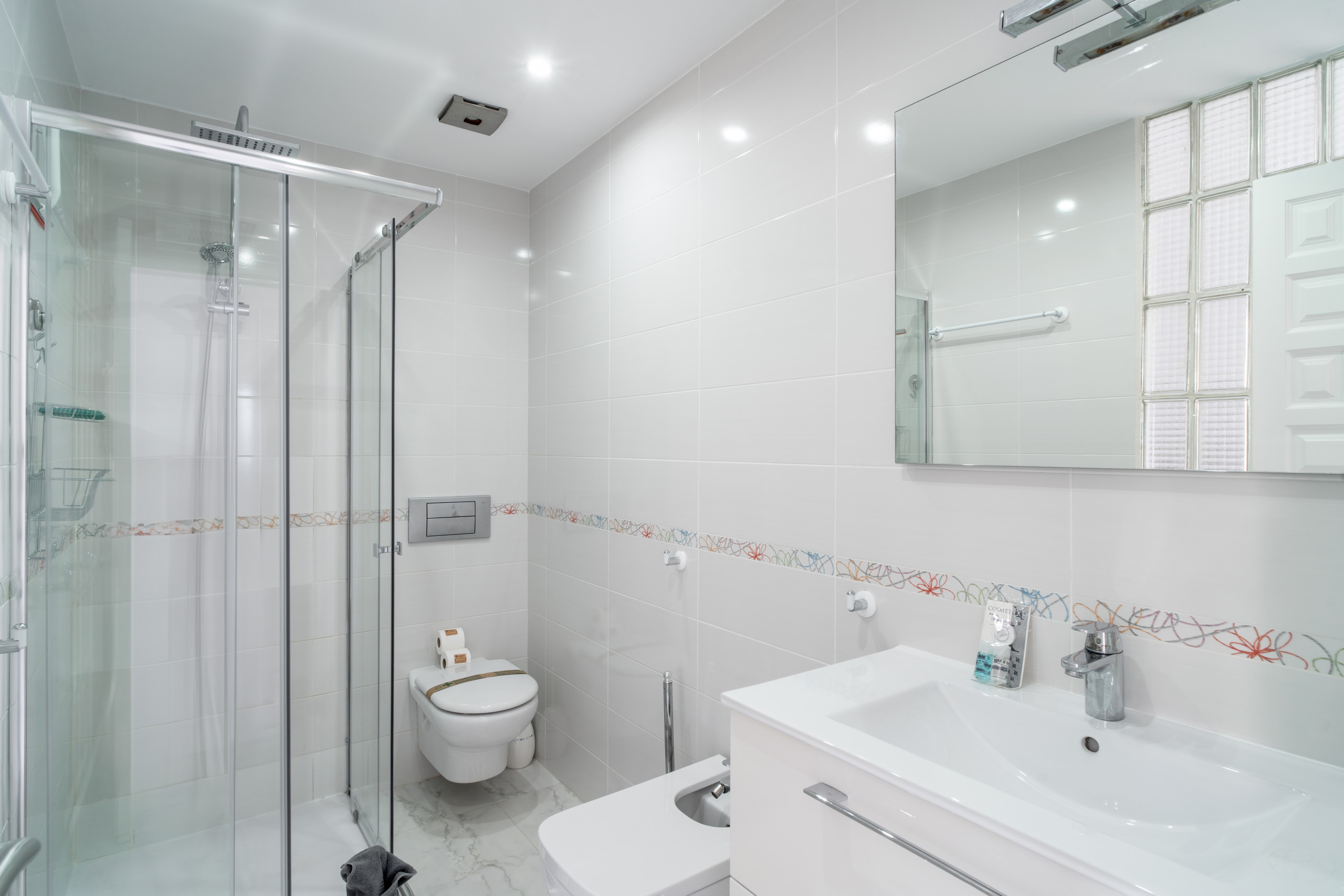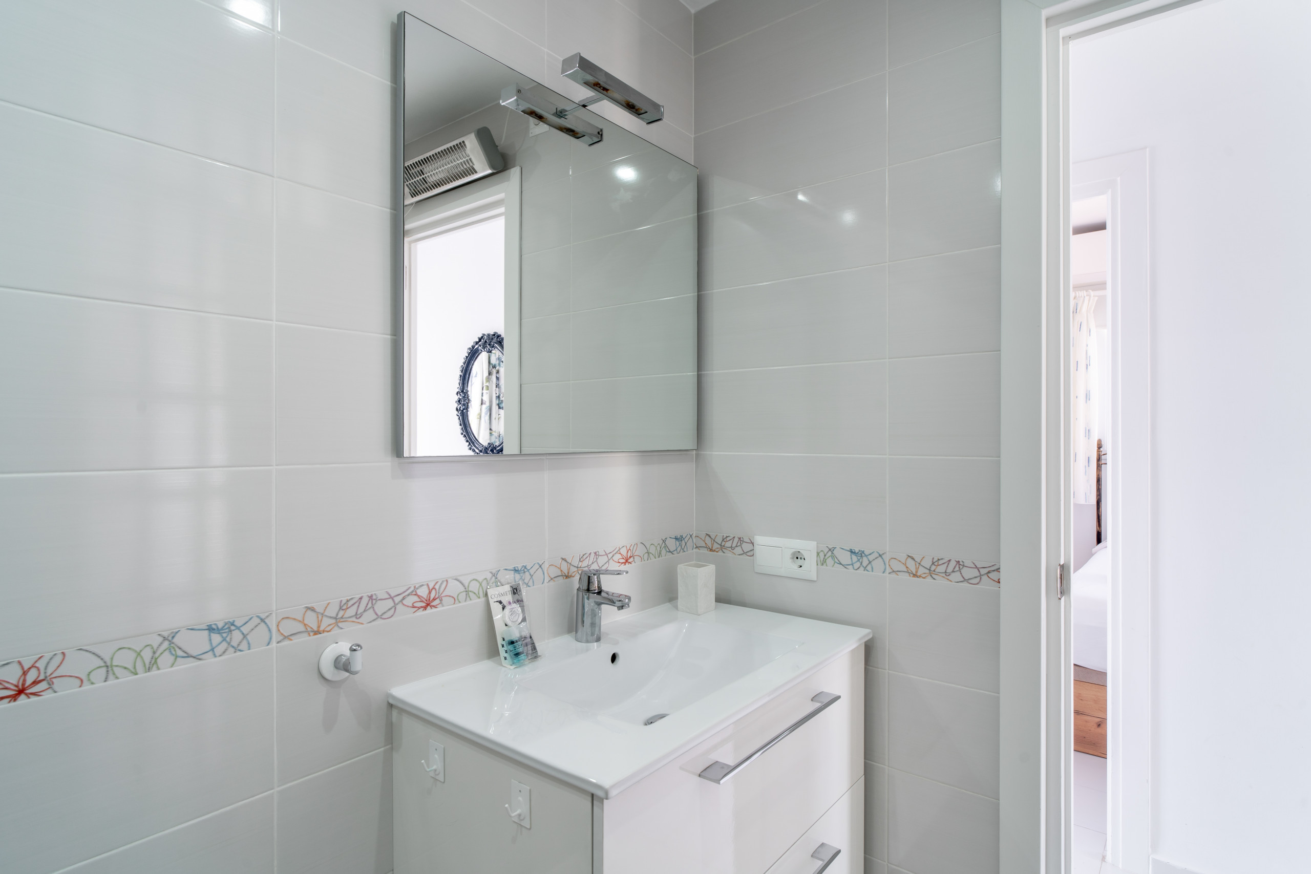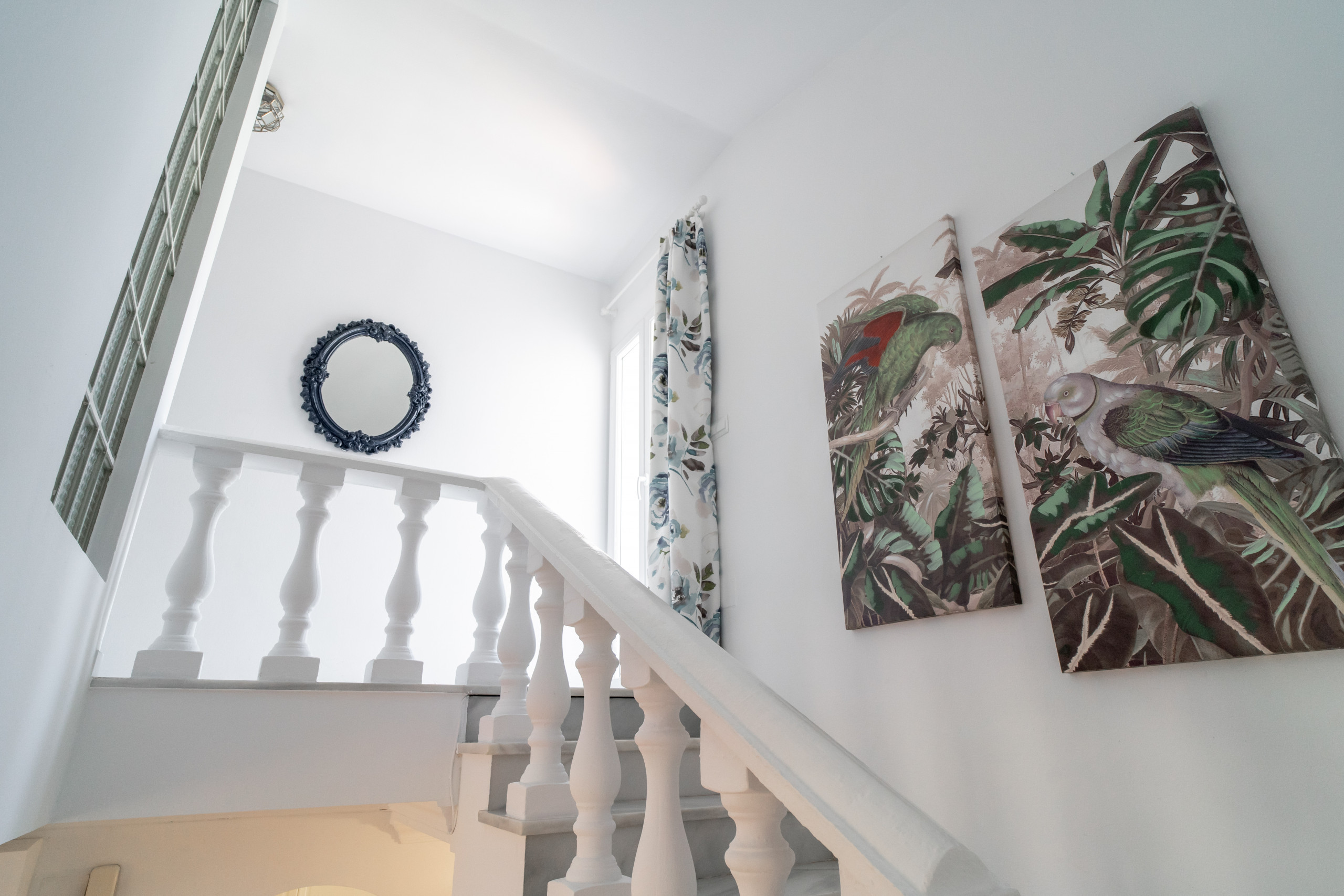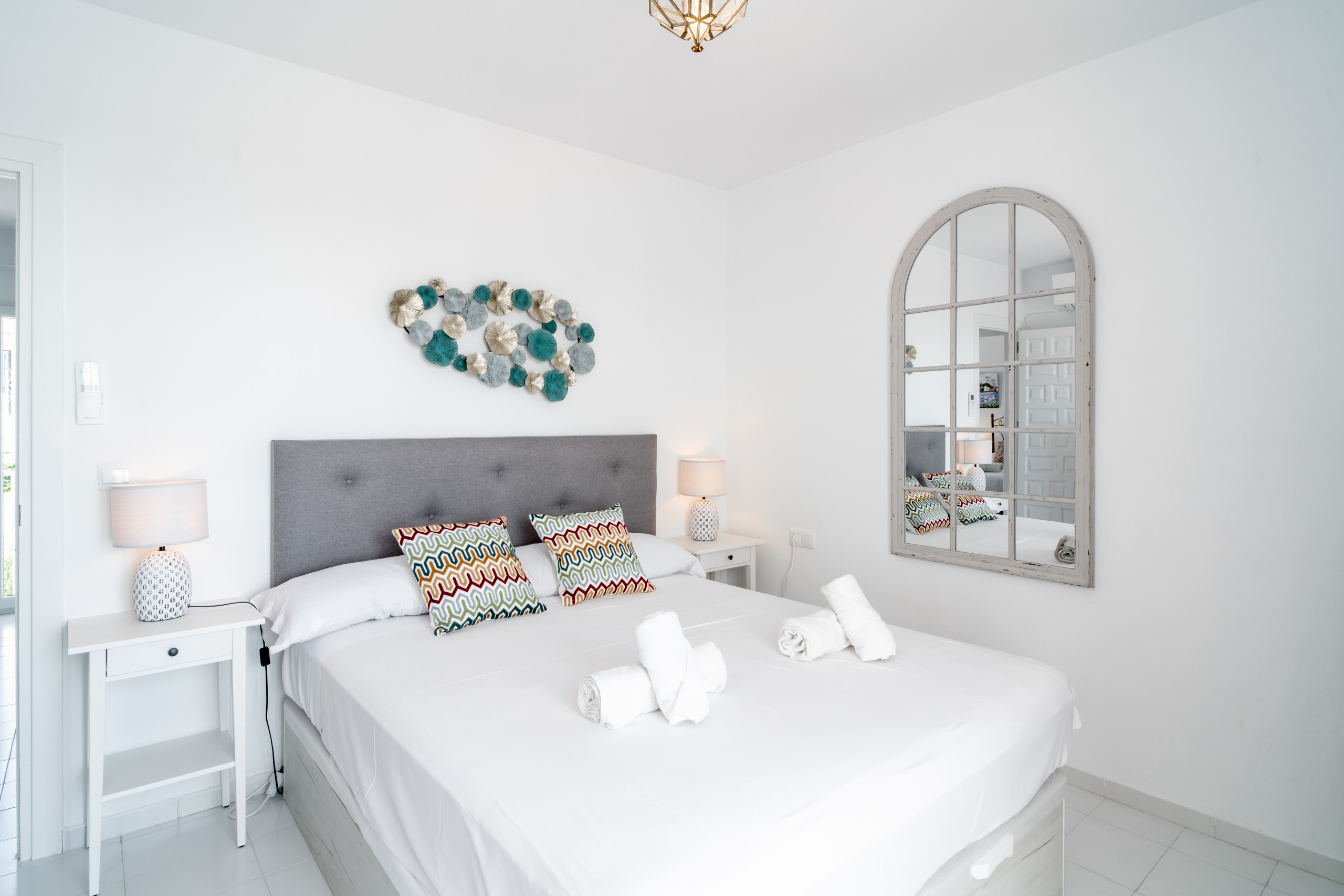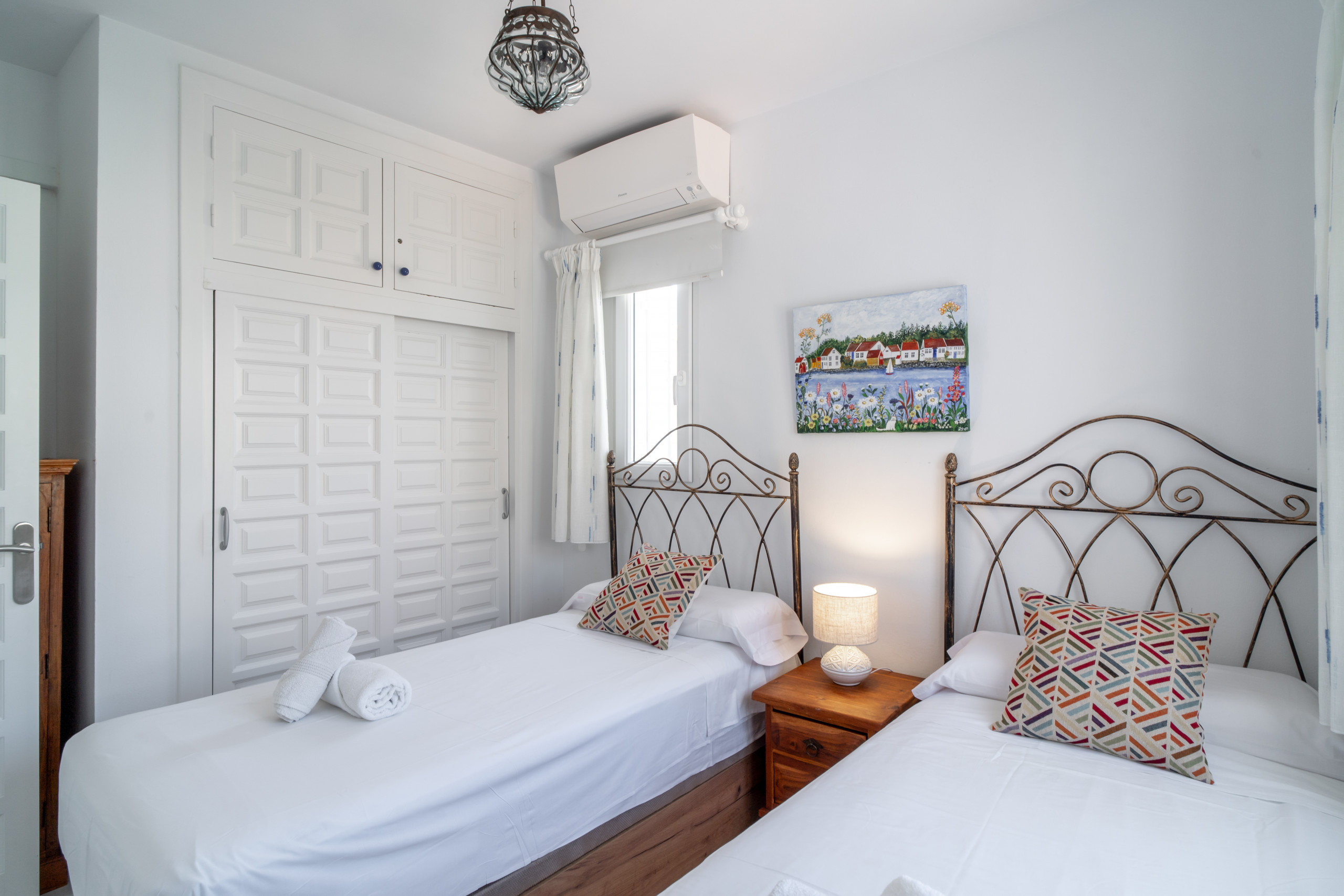 Im Obergeschoss befindet sich das Hauptschlafzimmer mit einem bequemen und hochwertigen Doppelbett, das zum Meer hin ausgerichtet ist und einen herrlichen Blick beim Aufwachen bietet, sowie eine Terrasse mit Sonnenliegen zum Sonnenbaden. Das zweite Schlafzimmer hat zwei ebenso komfortable und hochwertige Einzelbetten. Ein modernes Bad mit Dusche und eine Toilette auf der Etage des Wohnzimmers sorgen für Ihren Komfort.