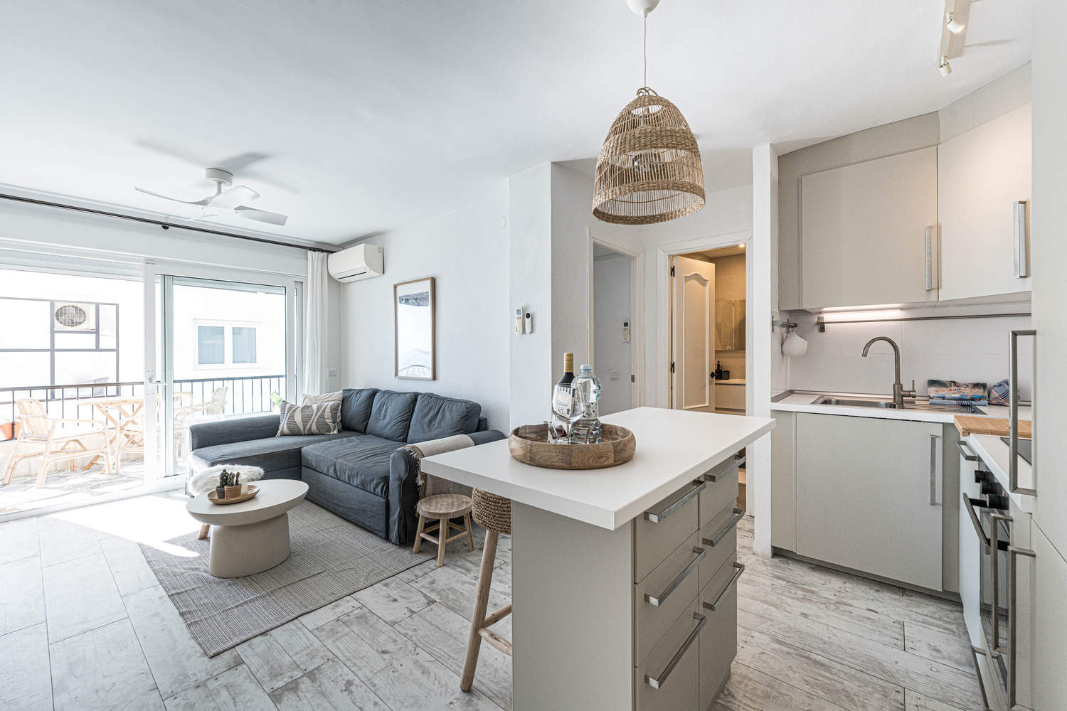 Die Immobilie: Modernes Apartment mit 1 Schlafzimmer, frisch renoviert und geschmackvoll eingerichtet. Mit einer Fläche von ca. 50 m² ist es ideal für Paare, die Ruhe, Komfort und eine unschlagbare Lage direkt am Meer suchen.