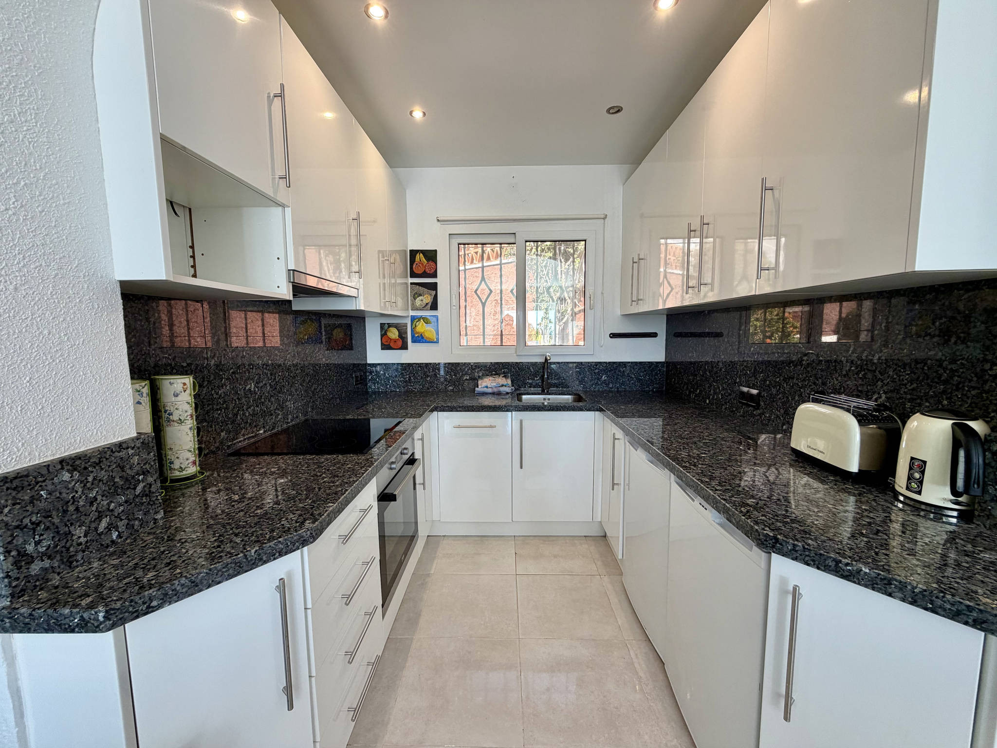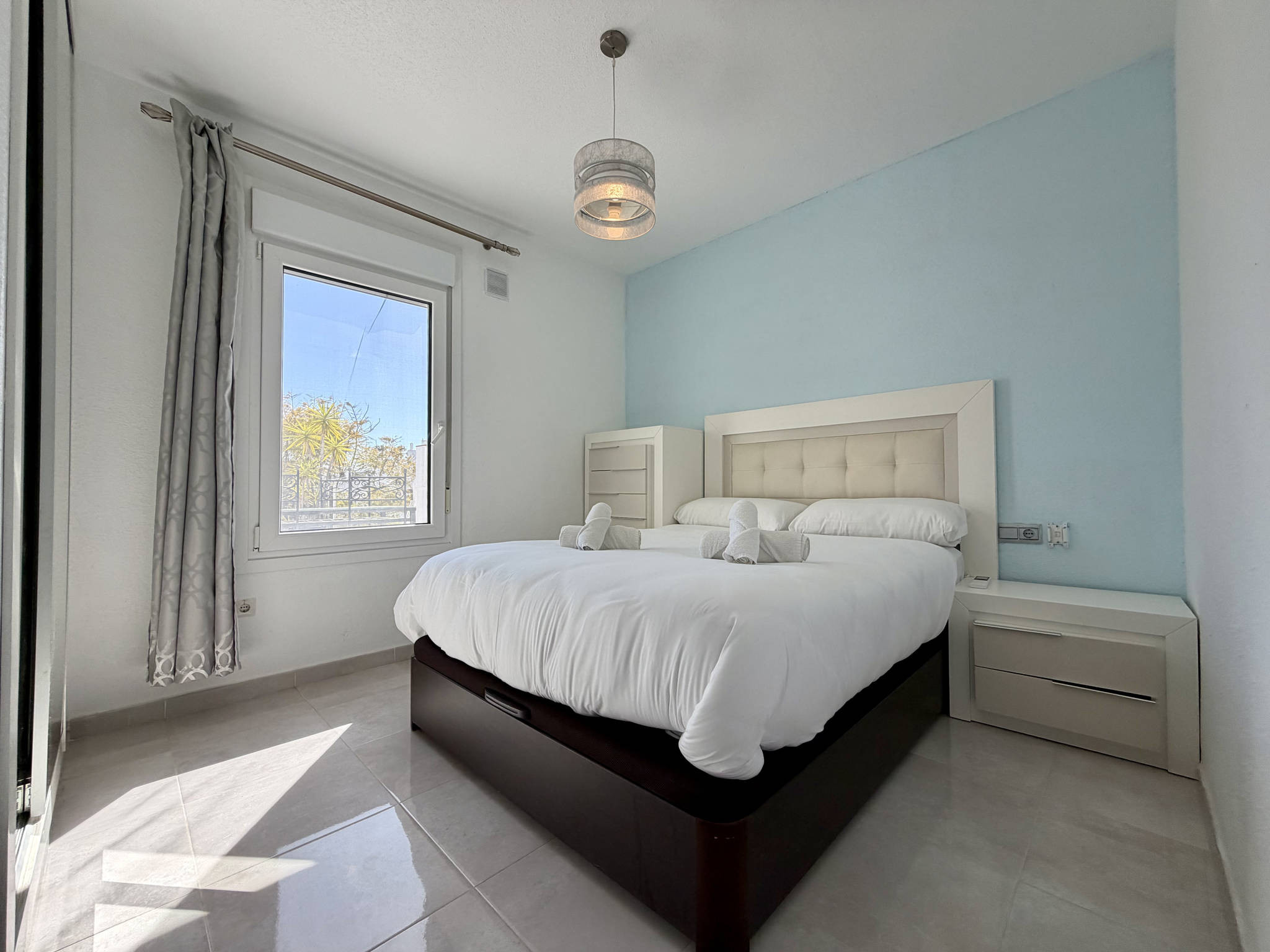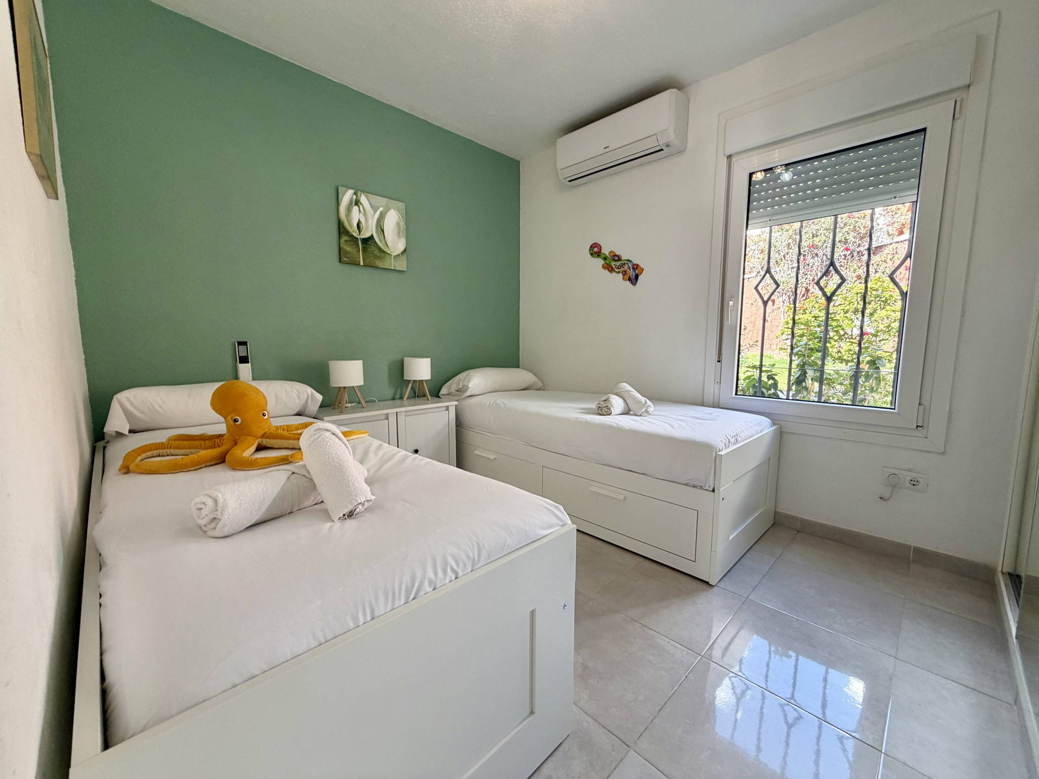 Der Wohnbereich zeichnet sich durch seine praktische Aufteilung aus, wobei die integrierte Küche über einen eigenen, aber barrierefreien Raum verfügt, der die Kommunikation im Haus erleichtert. Sie ist komplett mit einem Geschirrspüler ausgestattet, damit Sie keine Zeit mit Hausarbeit verlieren. Das Wohn-Esszimmer mit Highspeed-WLAN für Telearbeit und Fernseher ist direkt mit dem Außenbereich verbunden. Die Unterkunft verfügt über zwei Schlafzimmer: eines mit einem Doppelbett und eines mit zwei Einzelbetten sowie ein zentrales Badezimmer mit Dusche.Doppelte private Terrasse mit Grill und permanenter Sonneneinstrahlung