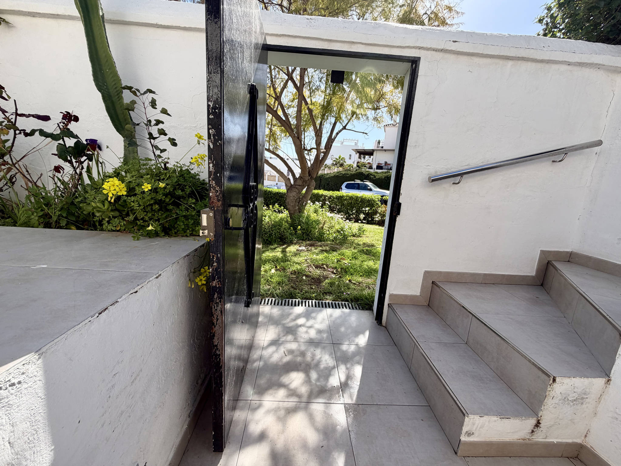 Dieser alternative Eingang gegenüber dem Waschmaschinenraum ermöglicht den direkten Zugang zu den Grünflächen der Wohnanlage und zur Straße, was den Weg zum Strand oder den Transport von Gepäck schnell und direkt erleichtert.Warum Sie Tropicana für Ihren Urlaub wählen sollten