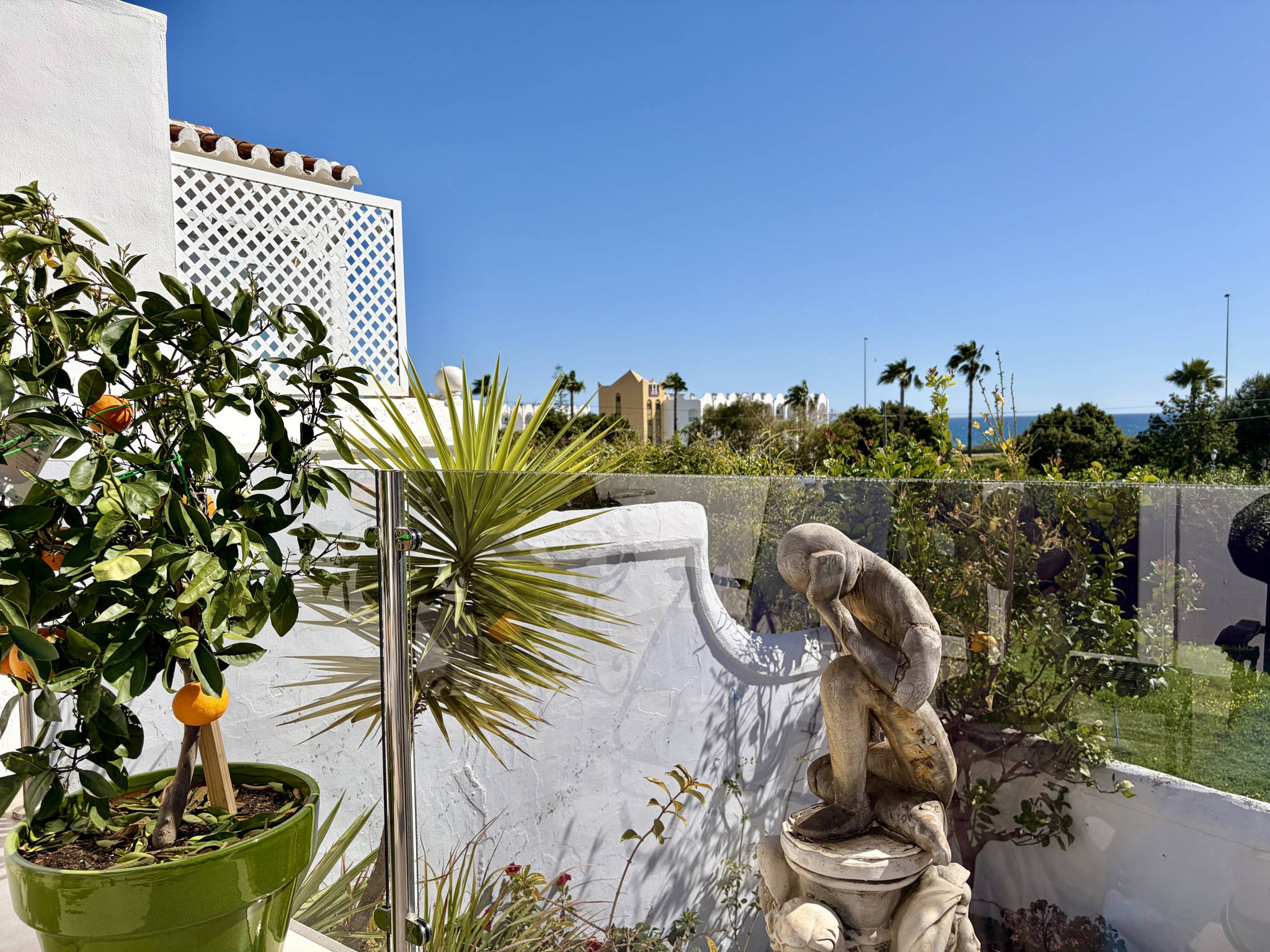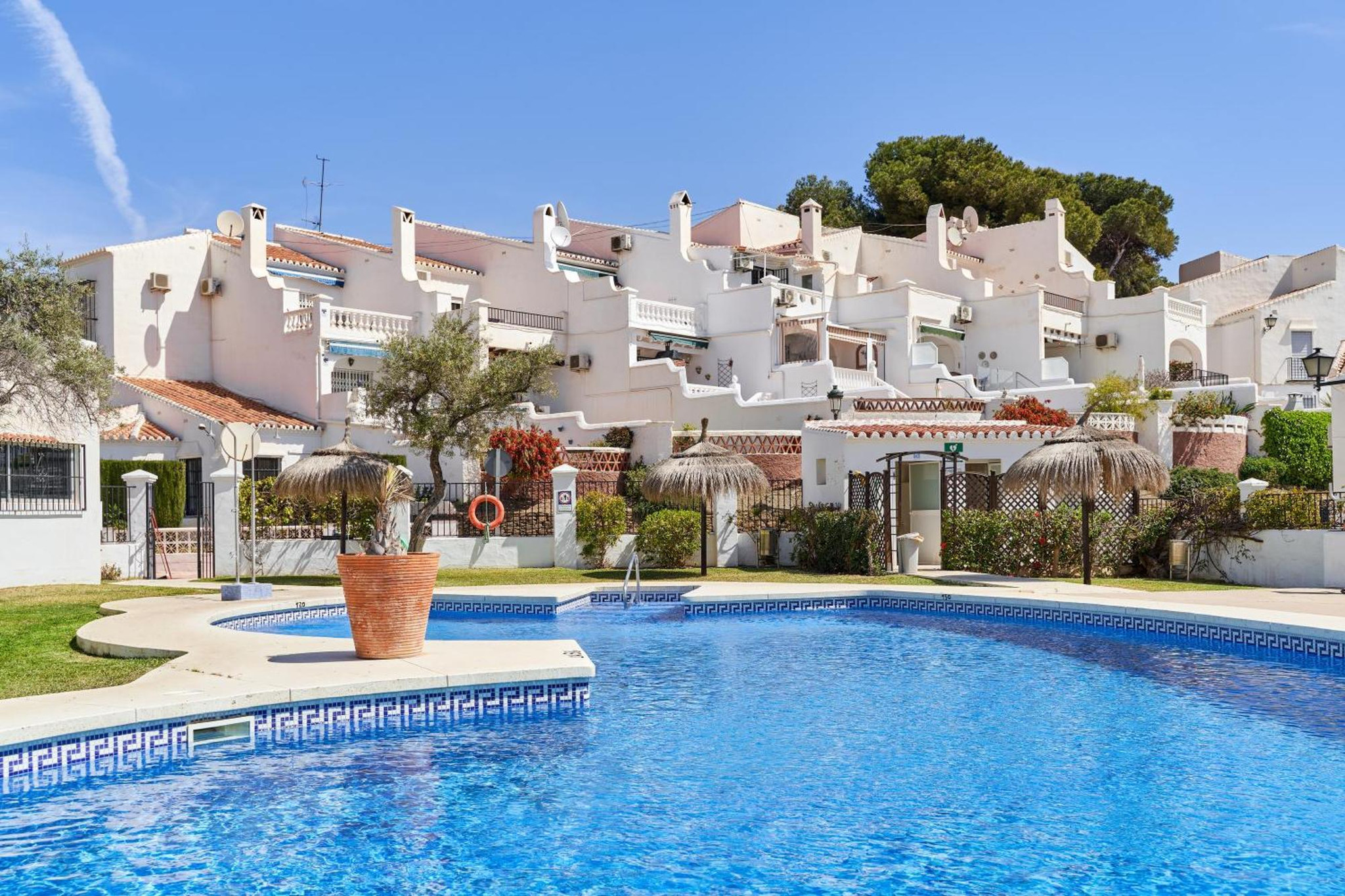 ✔ Einrichtungen der Wohnanlage: Sie haben Zugang zu einem großen Gemeinschaftspool, der von Gärten mit Sonnenschirmen umgeben ist, sowie zu einer Bar-Restaurant, das Frühstück, Tagesmenüs und Live-Sportübertragungen anbietet.✔ Aussicht und Ausrichtung: Die erhöhte Lage und die Südausrichtung ermöglichen einen ständigen Meerblick von der Terrasse aus und garantieren den größten Teil des Tages direkte Sonneneinstrahlung.