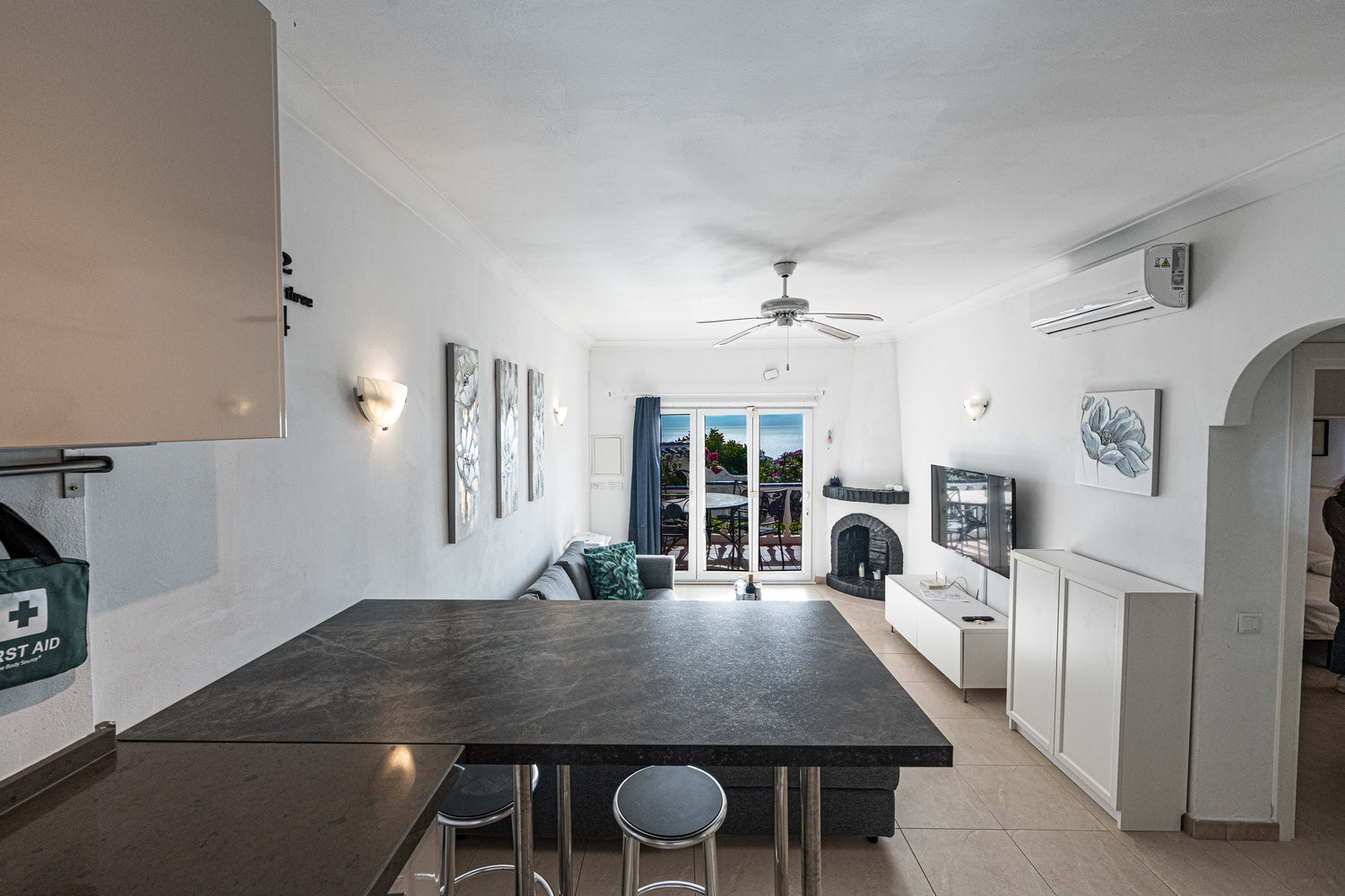 Der Innenbereich ist so gestaltet, dass jeder Gast seinen eigenen Rückzugsort findet. Es gibt zwei Schlafzimmer: das Hauptschlafzimmer mit einem Doppelbett und ein zweites Schlafzimmer mit zwei Einzelbetten, ideal für Kinder. Die Küche ist komplett ausgestattet mit wichtigen Geräten wie Geschirrspüler und Mikrowelle, sodass die Zubereitung von Familienmahlzeiten schnell und einfach vonstattengeht. Das Badezimmer wurde mit einer großen Duschwanne modernisiert, ideal zum Entspannen nach einem sonnigen Tag an der Küste.Private Terrasse umgeben von Vegetation