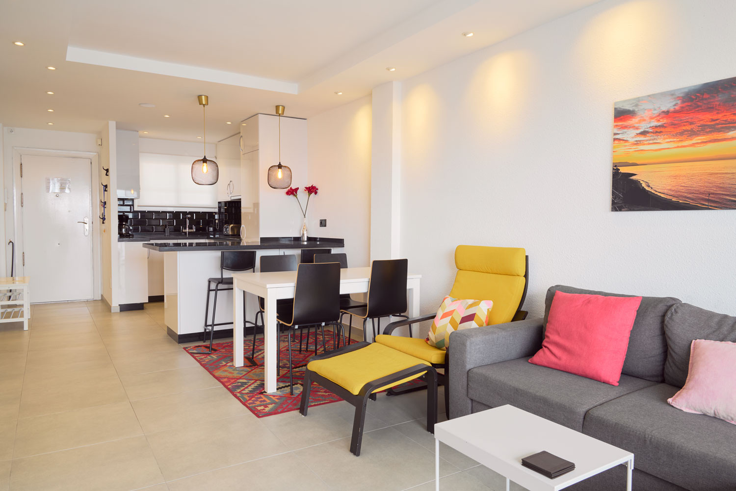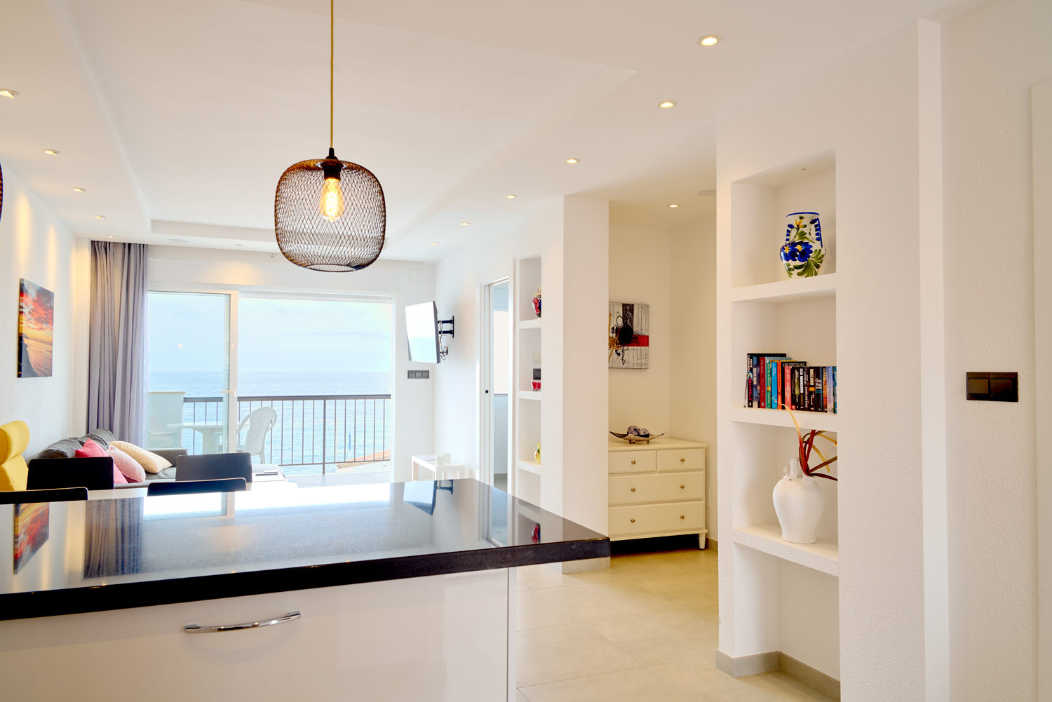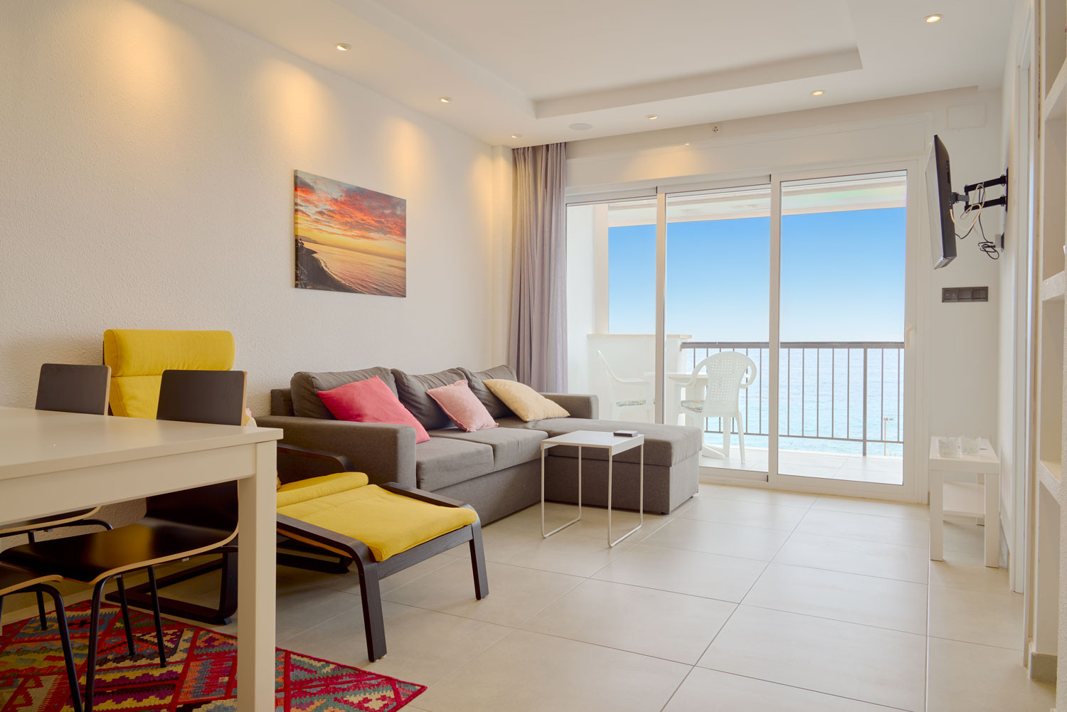 Sobald man die Unterkunft betritt, steht das Meer im Mittelpunkt. Das Gefühl, über dem Mittelmeer zu schweben, stellt sich sofort ein, wenn man die Schwelle überschreitet. Die Aufteilung des Wohnzimmers ist so gestaltet, dass das Blau des Horizonts wie eine Verlängerung des Bodens wirkt. Es ist ein Raum mit außergewöhnlicher Helligkeit, ideal für diejenigen, die eine vollständige visuelle Abkopplung suchen. Darüber hinaus ist die Lage unschlagbar, um das Auto zu vergessen, da sie weniger als 100 Meter vom Strand Playa de la Torrecilla entfernt ist, nur eine Minute zu Fuß.Funktionale Aufteilung und nach außen orientiertes Design