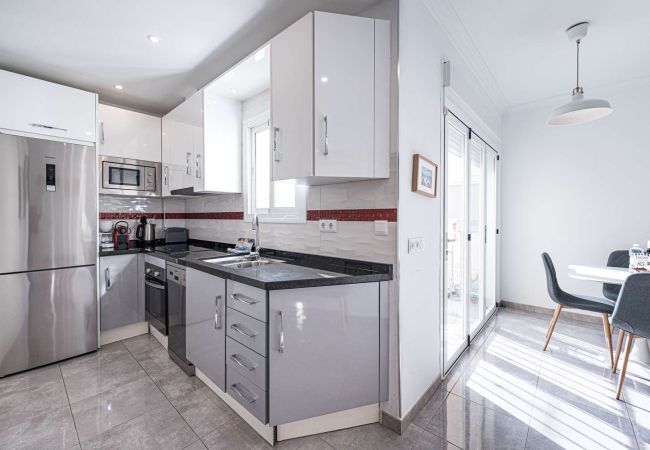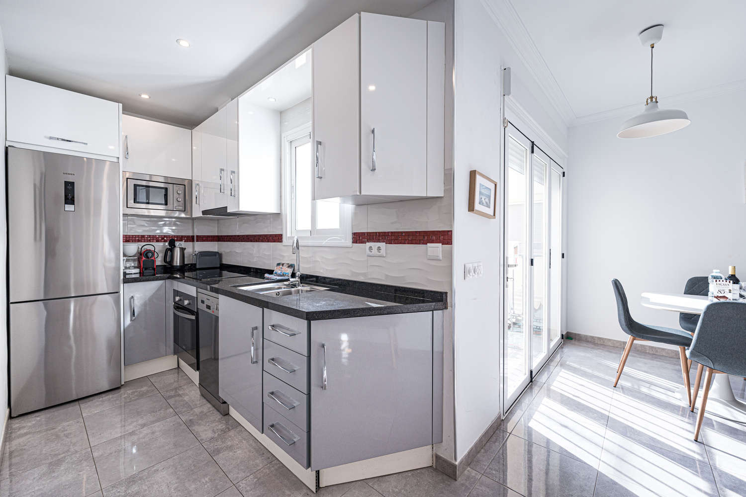 Der Kontrast zwischen dem modernen Interieur und der traditionellen andalusischen Architektur des Gebäudes verleiht der Unterkunft einen besonderen Charme. In der obersten Etage haben Sie Zugang zum Gemeinschaftspool (geöffnet von April bis Oktober) – ein erhöhter Rückzugsort, um abseits des Straßentrubels die Sonne zu genießen. Die Küche ist komplett mit modernen Geräten ausgestattet, sodass entspannten Abendessen nach einem Tag voller Entdeckungen an der Küste nichts im Wege steht.Warum Medina Torrecilla Beach für Ihren Urlaub wählen