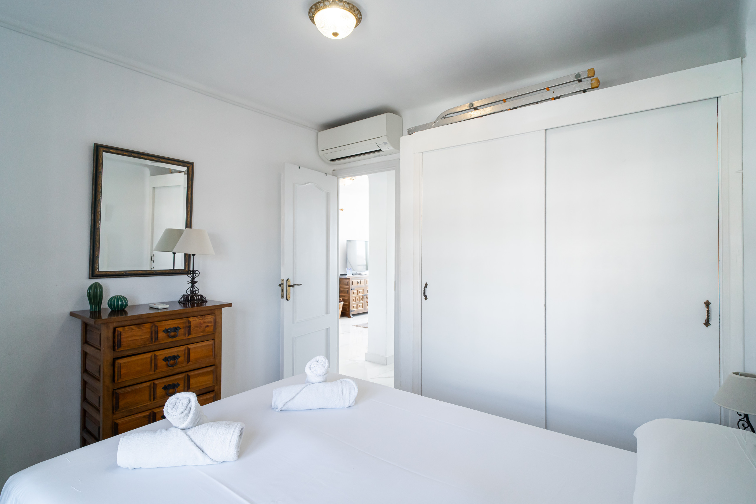 Beide Schlafzimmer verfügen über bequeme Doppelbetten und reichlich Stauraum, was unser Apartment zu einer idealen Wahl für Paare und Familien macht. Nehmen Sie ein Bad in unserem Gemeinschaftspool, der das ganze Jahr über geöffnet ist und der perfekte Ort zum Entspannen und Erholen ist.