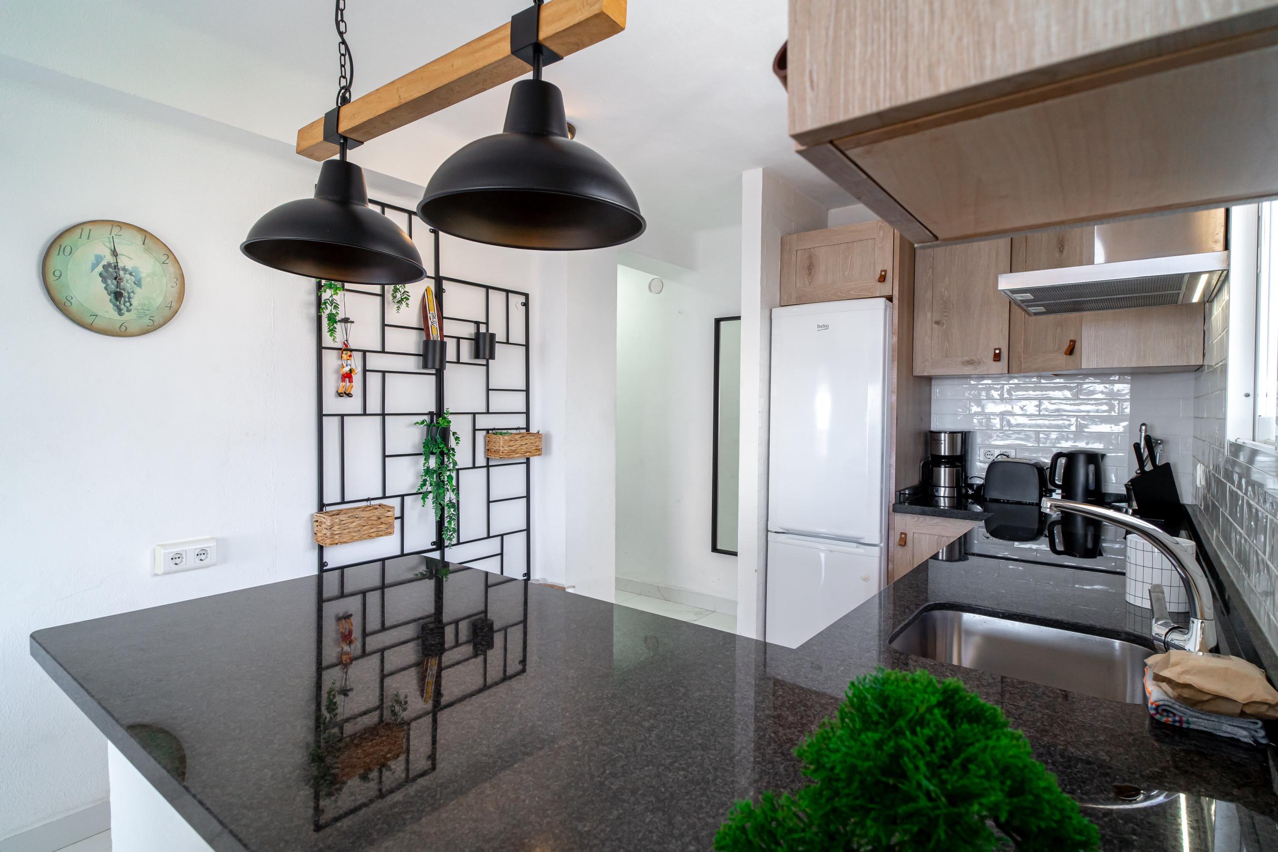 Mit der Klimaanlage und dem High-Speed-Internet haben Sie immer einen kühlen Kopf. Genießen Sie das moderne Design und die voll ausgestattete Küche, in der Sie bequem Ihre Mahlzeiten zubereiten können.
