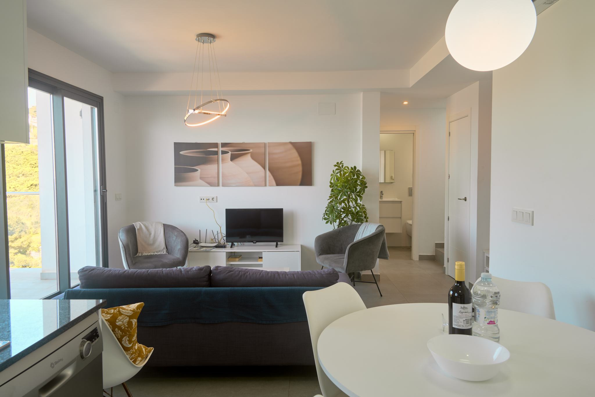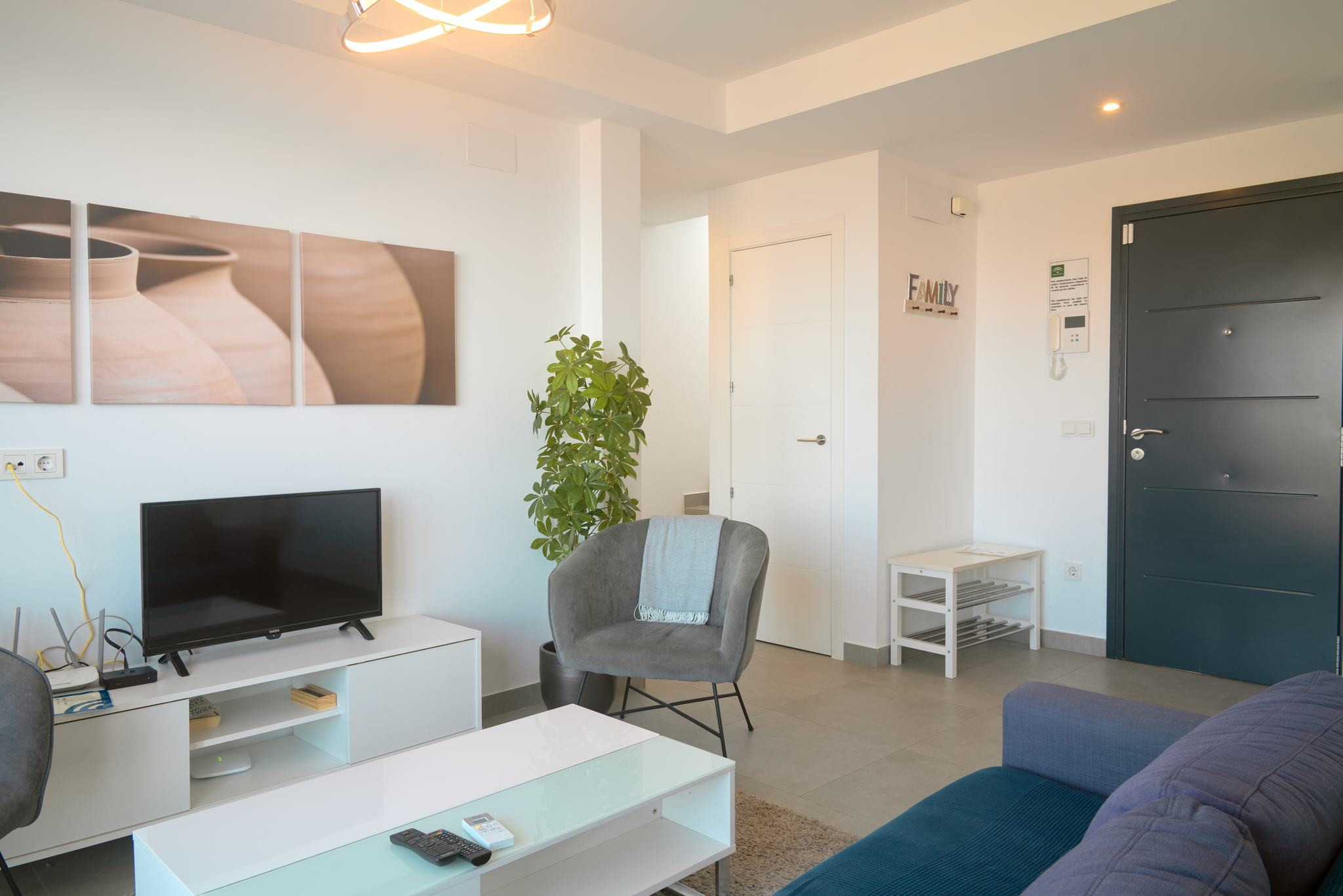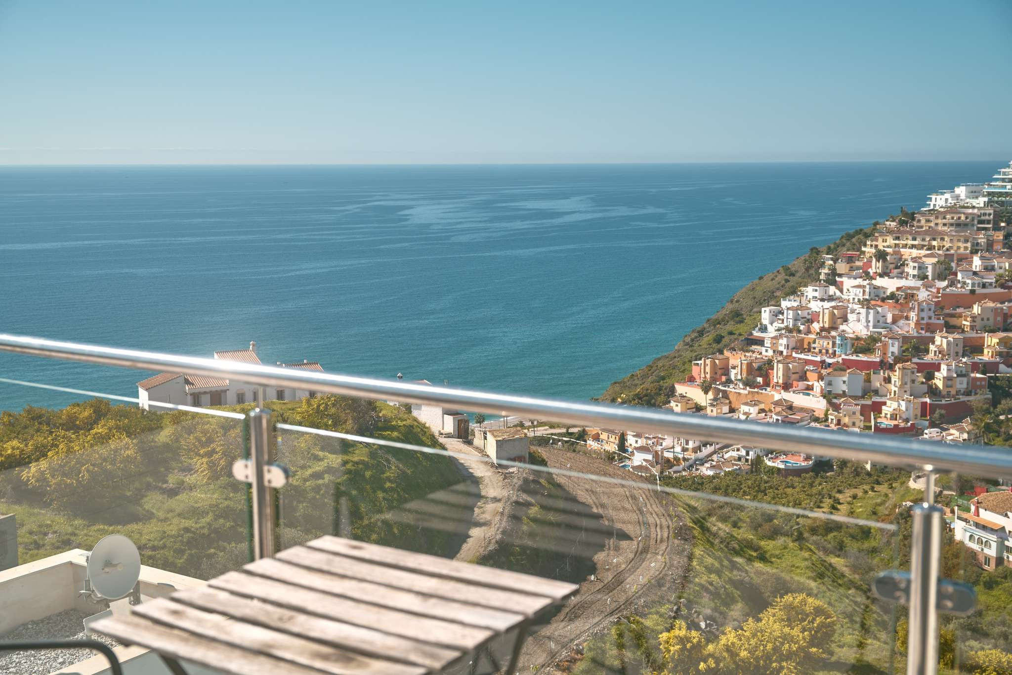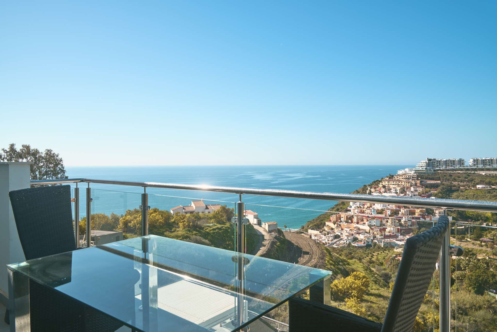 Da es sich um einen Neubau in erhöhter Lage handelt, bietet sich von allen drei Außenebenen ein direkter und beeindruckender Meerblick. Die oberste Dachterrasse verfügt über eine Außendusche, ideal, um sich nach einem Vormittag am Strand in absoluter Privatsphäre zu erfrischen. Die technische Ausstattung entspricht dem Standard einer modernen Wohnanlage und umfasst Highspeed-WLAN sowie Fernsehen mit internationalen Kanälen, um nach einem Tag voller Erkundungen in Nerja zu entspannen.