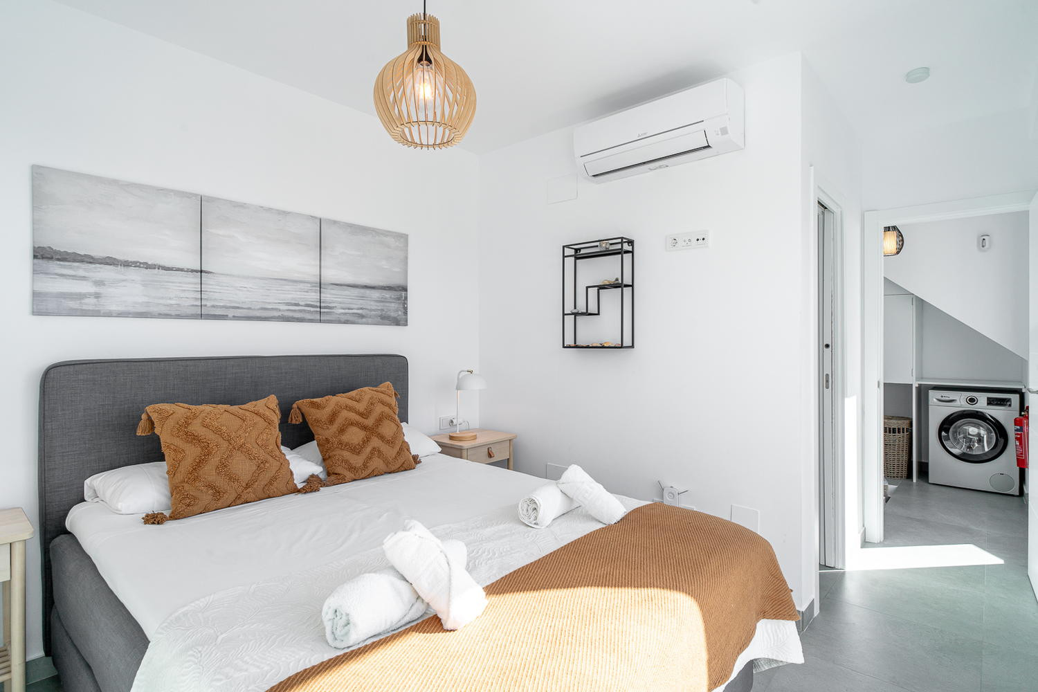Modern och fräsch inredning i Scandinavisk stil, härligt att vakna i master bedmehr anzeigen