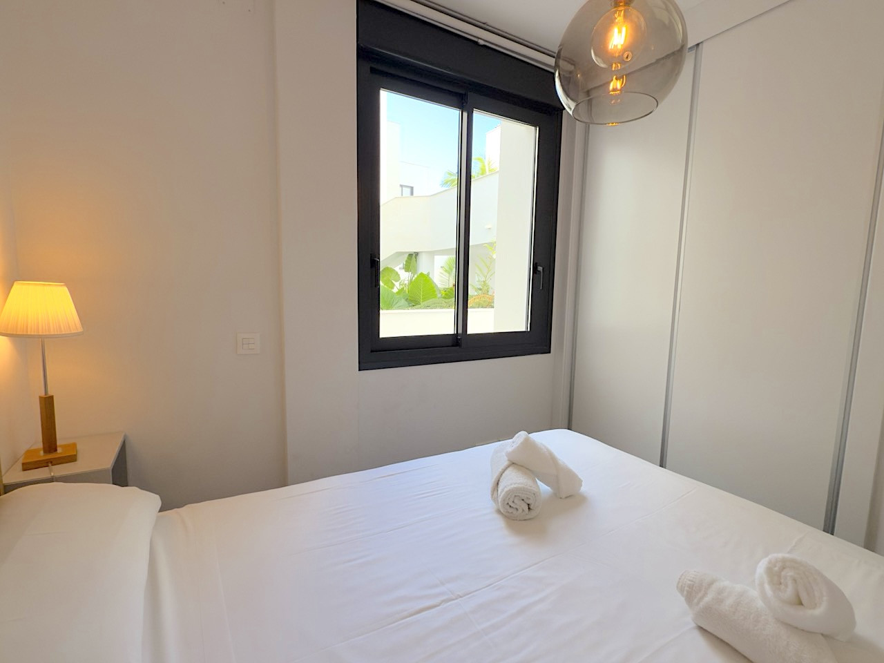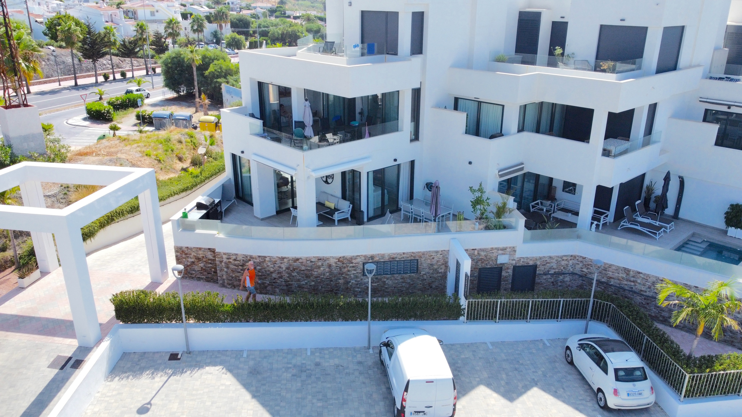 Royal Palm ist ein Neubau mit modernem Design, klaren Linien, minimalistischen Proportionen, offenen Grundrissen und großzügigen Glaselementen, die viel natürliches Licht hereinlassen. Der vom renommierten Architekten Bernardo Pozuelo entworfene Komplex liegt inmitten üppiger, lebendiger Gärten, die mit exotischen Palmen und Zierbrunnen geschmückt sind und eine ruhige und friedliche Umgebung schaffen. Am Eingang bietet ein Gemeinschaftspool den perfekten Ort zum Entspannen und für geselliges Beisammensein.
