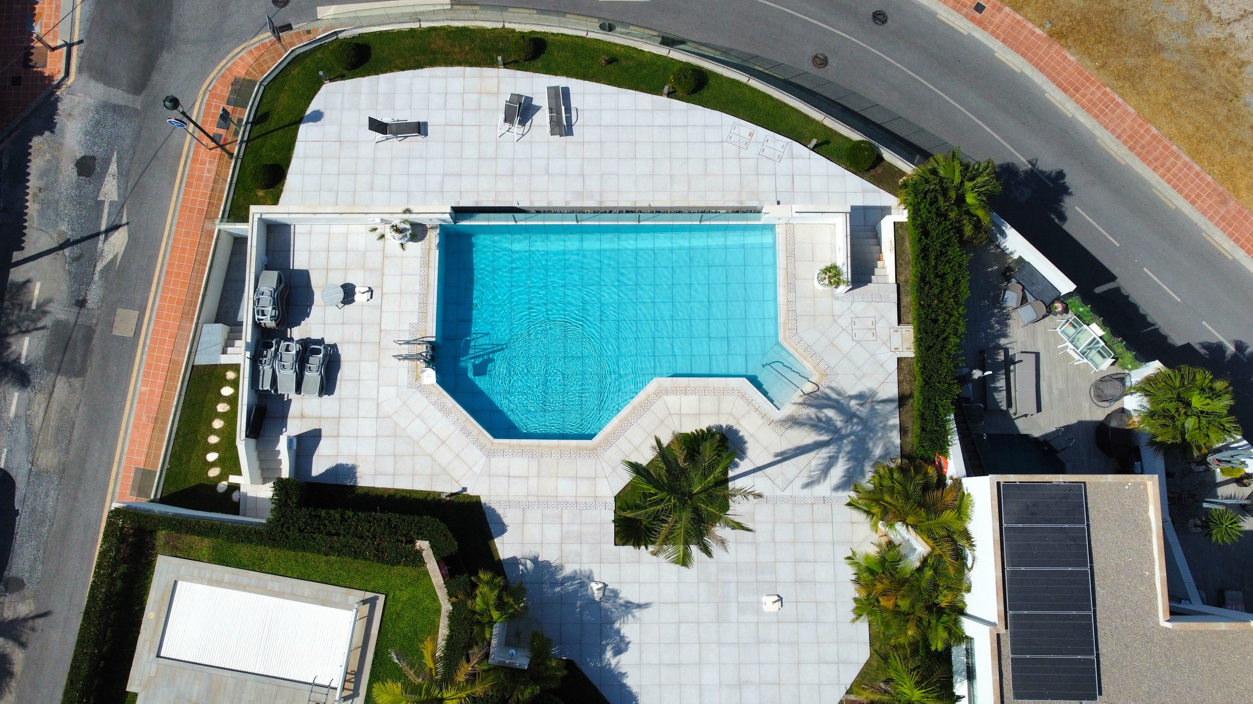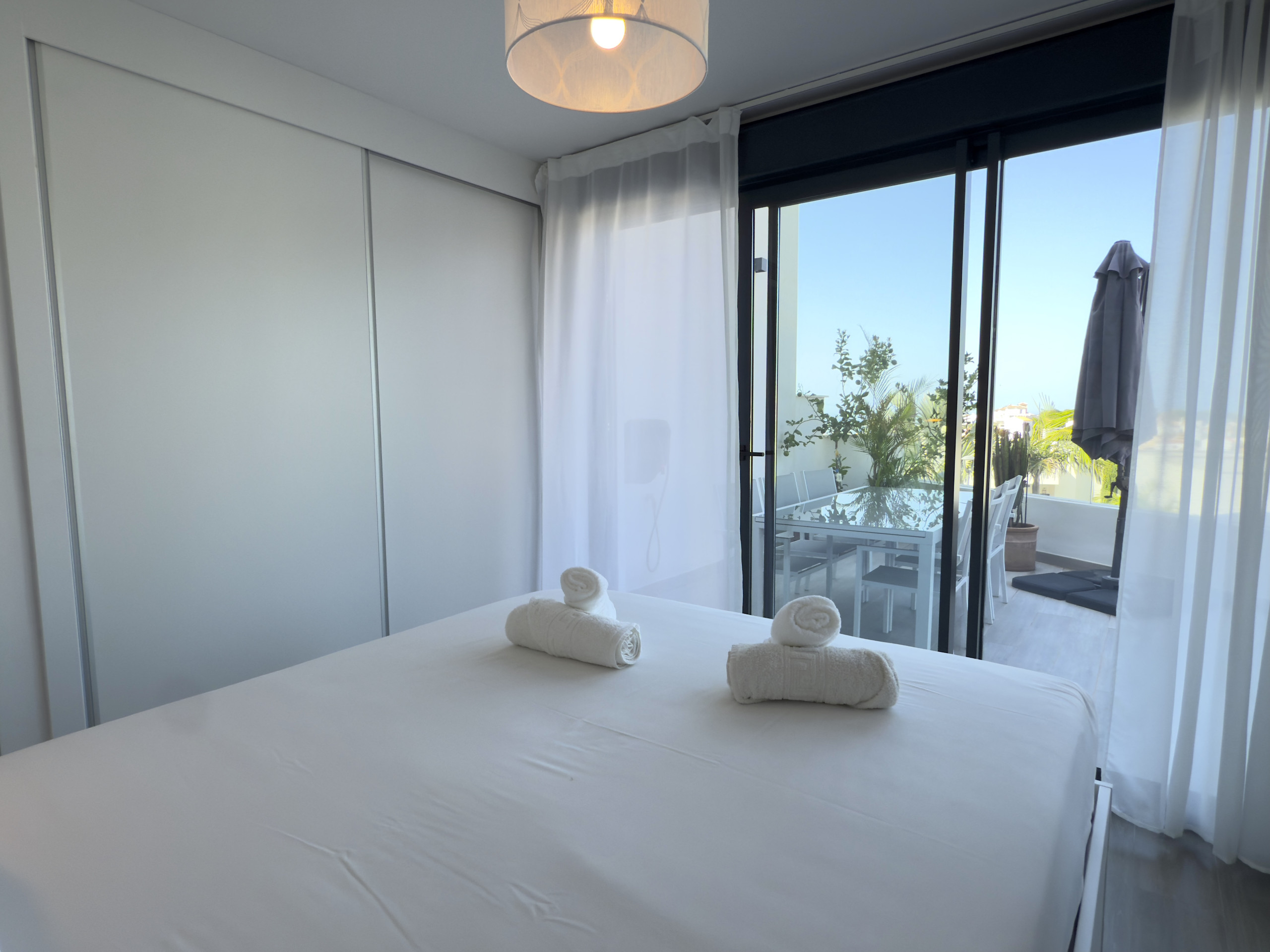 Royal Palm Luxe ist ein luxuriöses und stilvolles Apartment in Südwestlage, das mit modernen Möbeln eingerichtet ist und bei dem Komfort und Entspannung im Vordergrund stehen. Es verfügt über eine große Terrasse mit Essbereich, Lounge-Bereich und eine Außenküche mit Grill, die sich perfekt für Mahlzeiten und Zusammenkünfte im Freien eignet. Im Inneren des Apartments befinden sich drei wunderschön eingerichtete Schlafzimmer, darunter ein Hauptschlafzimmer mit eigenem Bad und direktem Zugang zur Terrasse sowie zwei weitere Schlafzimmer mit Doppelbetten und hochwertigen Matratzen für höchsten Komfort.