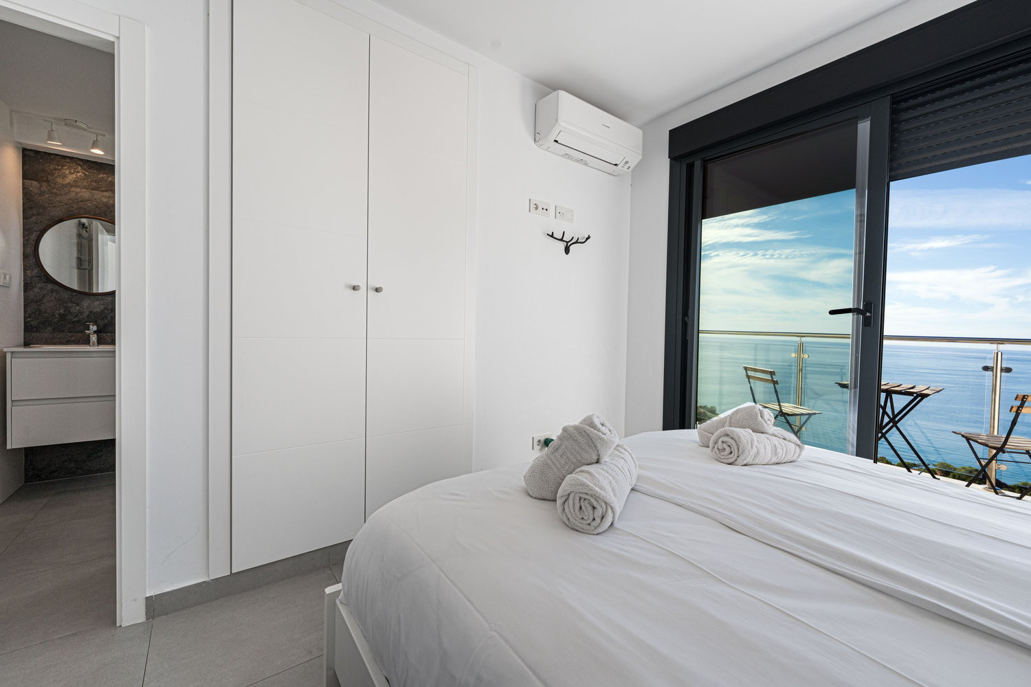 Beautiful modern apartment, it was spotlessly clean when we arrived , very well equipt with dishwasher ,coffee machine, washing machine, the bed we slept in was so comfortable…we had the best sleep ever , it was so lovely to wake up to a sea view every morning , only one bedroom has the sea view ( so get in quick ) .