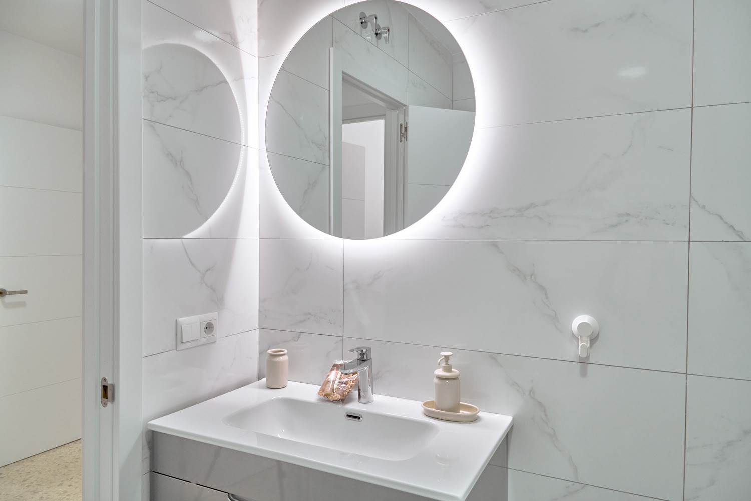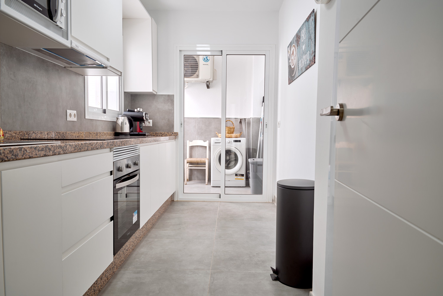 Ausstattung: Glasfaseranschluss, Klimaanlage (kalt/warm), Küche mit kompletter Ausstattung, Mikrowelle, Kaffeemaschine und separater Waschbereich mit Waschmaschine und Wäscheständer.