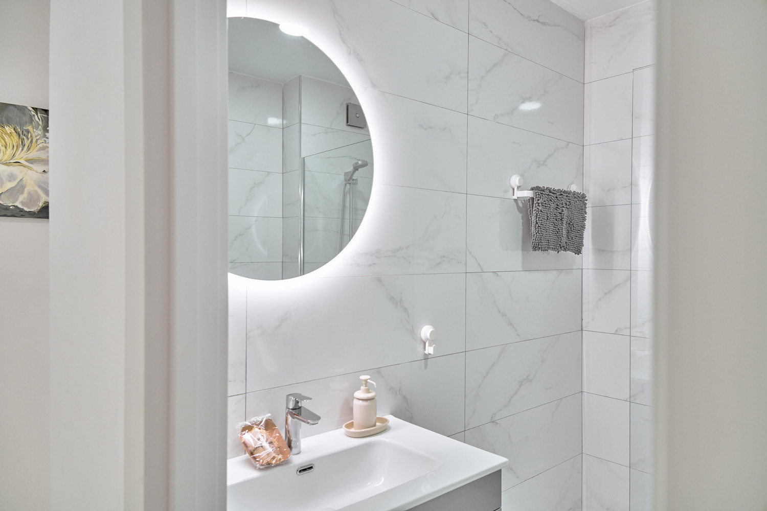 Hand- und Duschtücher liegen bereit.