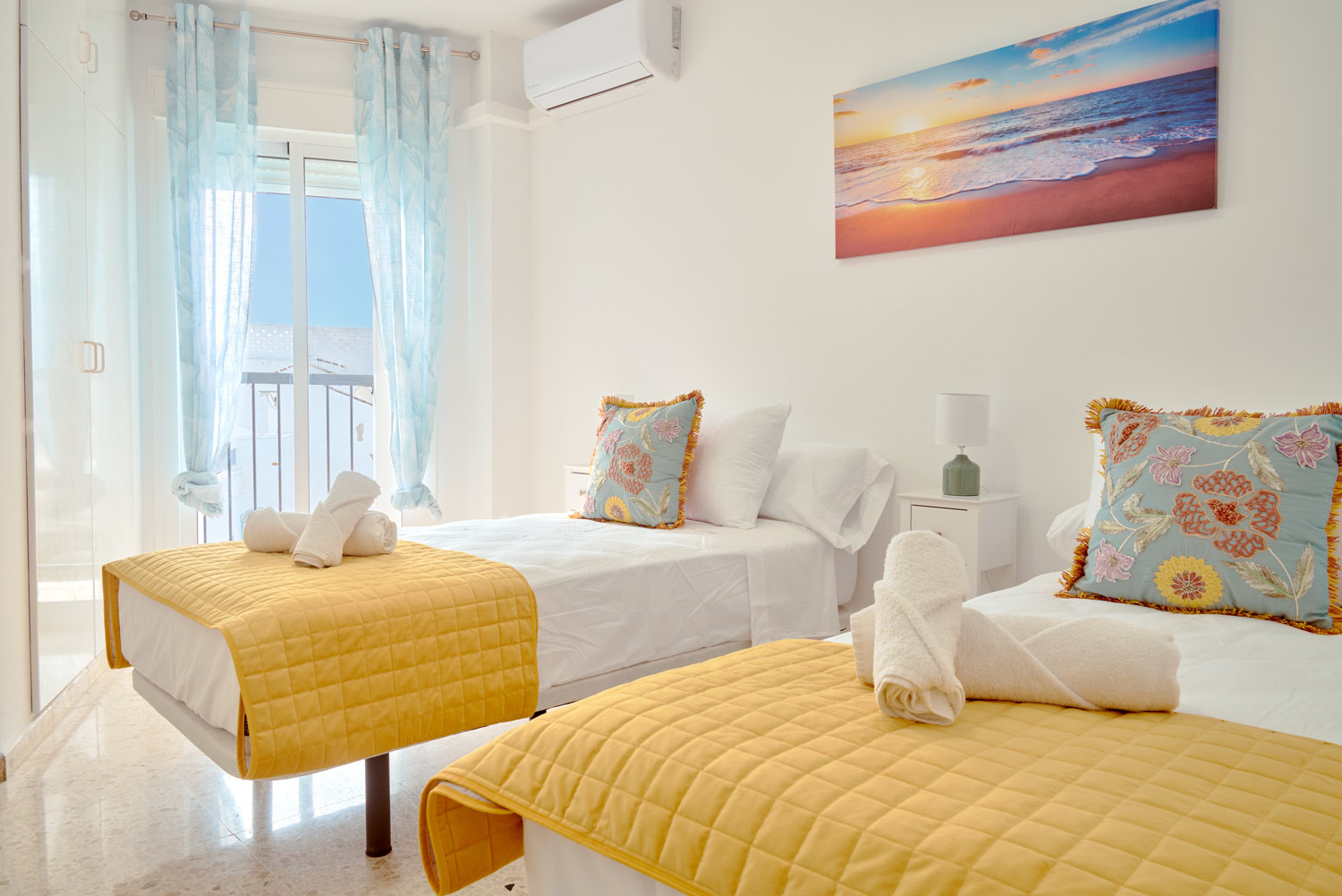 Genießen Sie das natürliche Licht, das jeden Winkel dieses Refugiums im Herzen von Nerja durchflutet, wo die Sonne von Südseite schon früh morgens direkt auf die Balkone scheint. Es ist der ideale Ort für Familien, die ihr Frühstück im sanften Trubel des Zentrums genießen möchten, bevor sie nur wenige Minuten zum Strand laufen, oder für diejenigen, die dank des im Wohnzimmer integrierten Schreibtisches einen hellen Telearbeitsplatz benötigen.Die Immobilie: Diese geräumige Dreizimmerwohnung ist auf Familienkomfort ausgelegt. Sie verfügt über ein Hauptschlafzimmer mit Doppelbett und zwei weitere Schlafzimmer mit je zwei Einzelbetten. Sie verfügt über ein komplettes Badezimmer mit Dusche und eine voll ausgestattete Küche, die mit einem funktionalen Innenhof verbunden ist.
