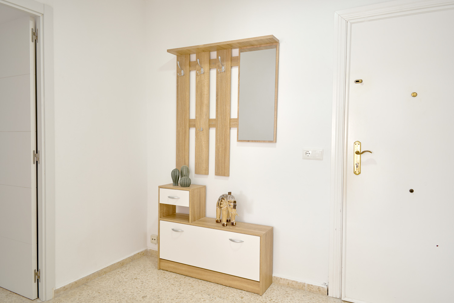 Innen- und Außenbereich: Das Wohnzimmer ist das Herzstück der Wohnung, ein offener Raum, in dem der Esstisch und das Sofa von der Helligkeit profitieren, die durch das große Fenster hereinkommt. Der Übergang nach draußen ist fließend: eine kleine, nach Süden ausgerichtete Terrasse, die sich perfekt zum Lesen oder für einen Drink in der Sonne eignet. Darüber hinaus erleichtert der Waschbereich im Innenhof die Logistik der Handtücher nach einem Tag am Strand.
