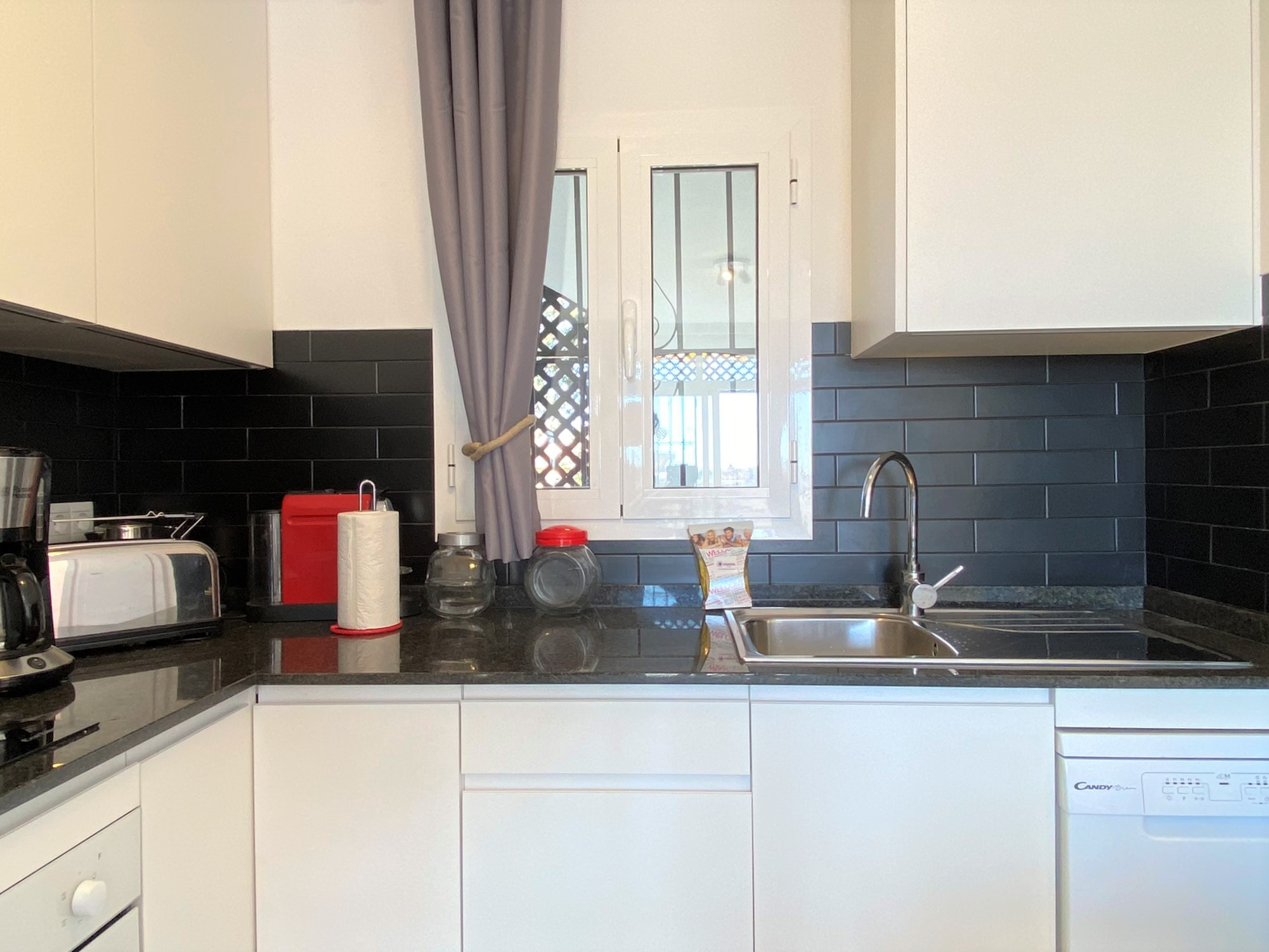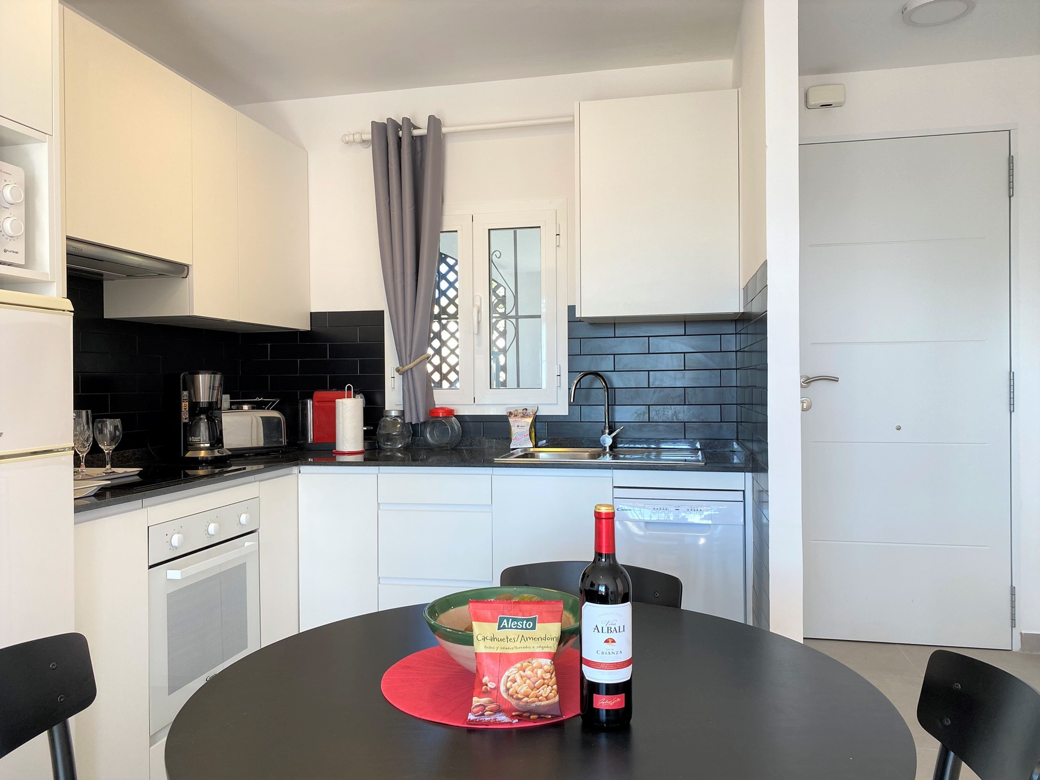 Great little appartment with nice balcony to have a cup of coffee in the morning. Lots of sunshine and amazing view of the mountains and sea. Night was very quiet. Close to supermarkets and main road. It has all the utensils you need, laundry machine and even dishwasher!