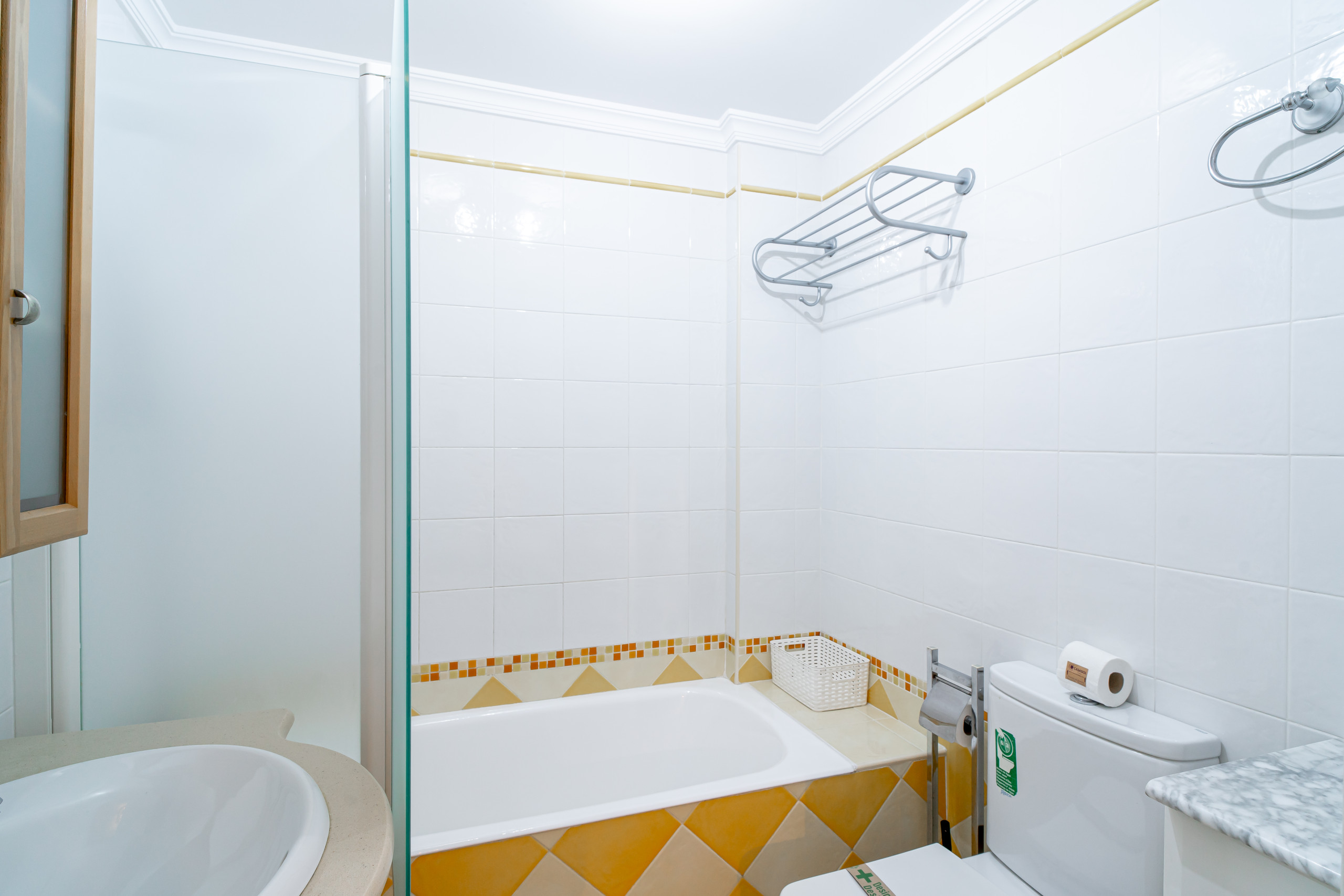 Sie verfügt über einen Balkon mit spektakulärem Blick auf das Meer und den Gemeinschaftspool, ein geräumiges Wohnzimmer mit Smart TV und Highspeed-Internet. Die Küche ist komplett ausgestattet. Zu den zwei Schlafzimmern gehören ein Hauptschlafzimmer mit Doppelbett und ein weiteres mit zwei Einzelbetten.