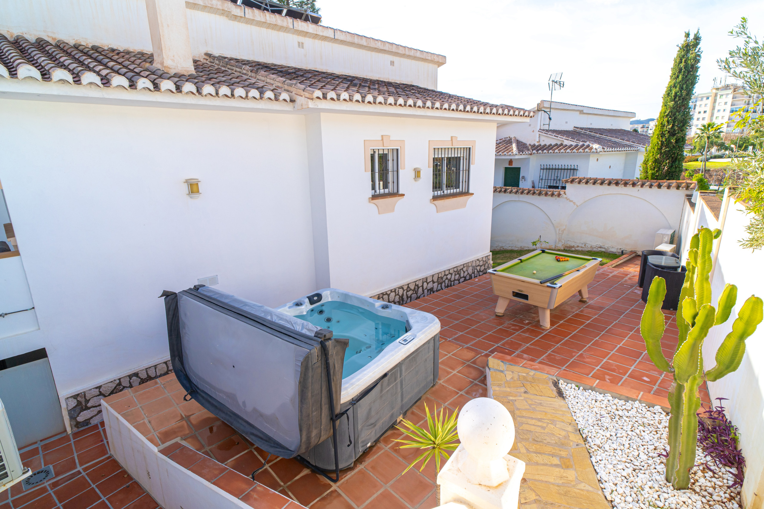 Willkommen in der Villa Grande Luxe, einem spektakulären Rückzugsort mit 300 m² Wohnfläche und 600 m² Grundstück, der für maximalen Komfort und Exklusivität ausgelegt ist. Der elegante andalusische Stil mit Marmoroberflächen und modernen Einrichtungen macht sie zur perfekten Wahl für einen unvergesslichen Urlaub.
