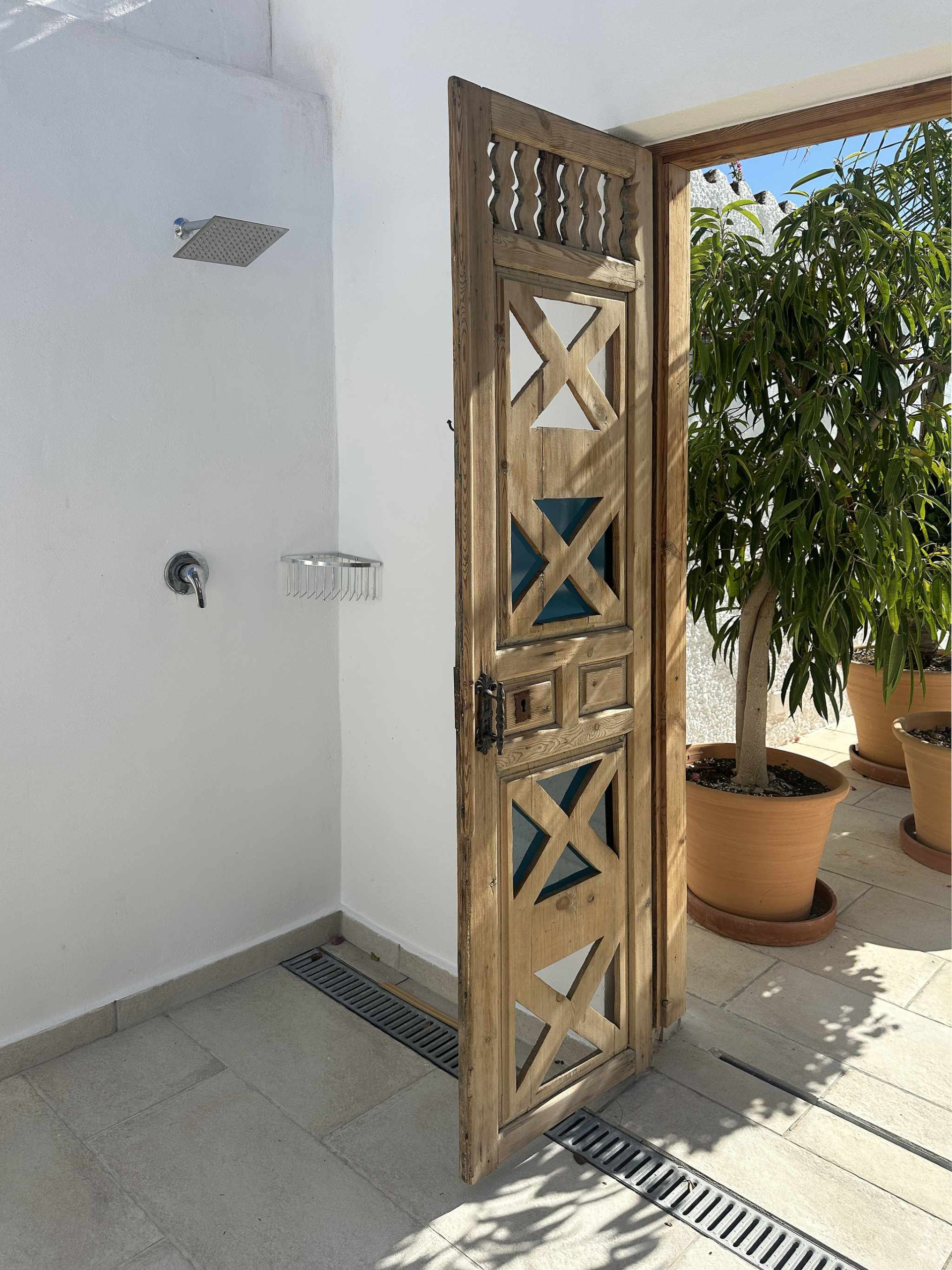 Der Außenbereich ist das Highlight der Villa und so angelegt, dass jeder Quadratmeter optimal genutzt wird. Sobald Sie ins Freie treten, finden Sie den Bereich mit dem privaten Pool mit freiem Blick und einer Liegefläche. Auf der linken Seite befinden sich eine komfortable Außendusche und eine Wäscheleine, während auf der rechten Seite ein Tisch im Freien für Ihre Abendessen im Freien bereitsteht. Ein paar Stufen weiter unten gelangen Sie zu einem separaten Gartenbereich mit einem mauerwerkartigen Grill – der perfekte Ort, um ganz unabhängig vom Badebereich auf dem Grill zu kochen.