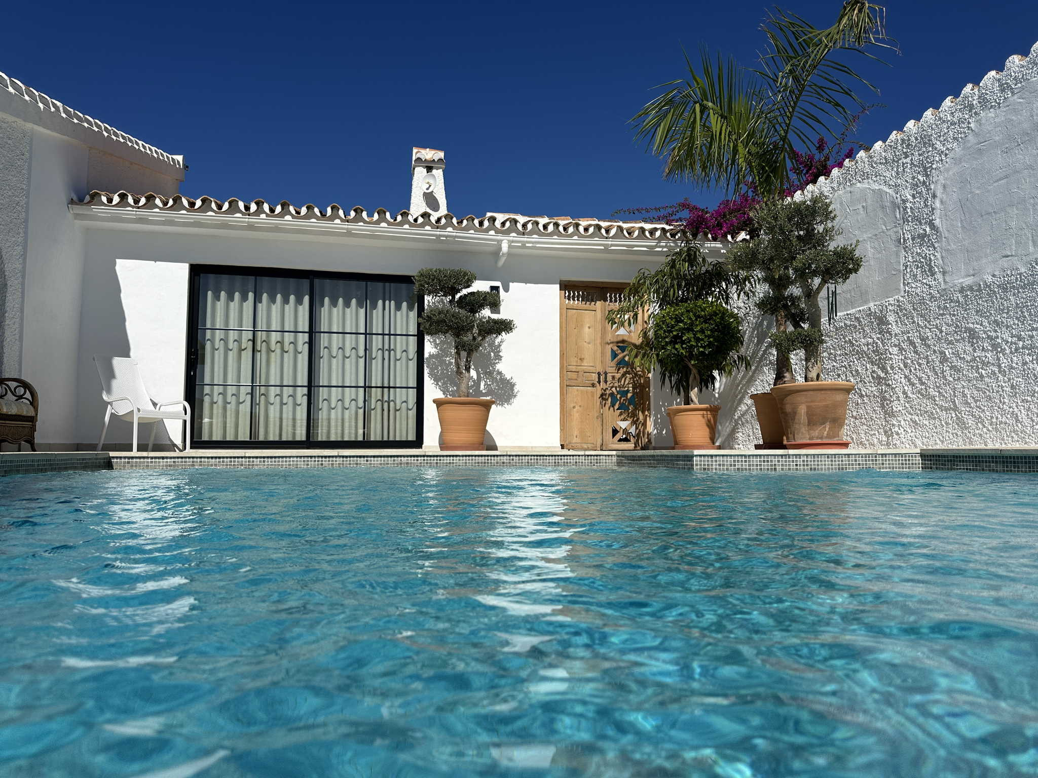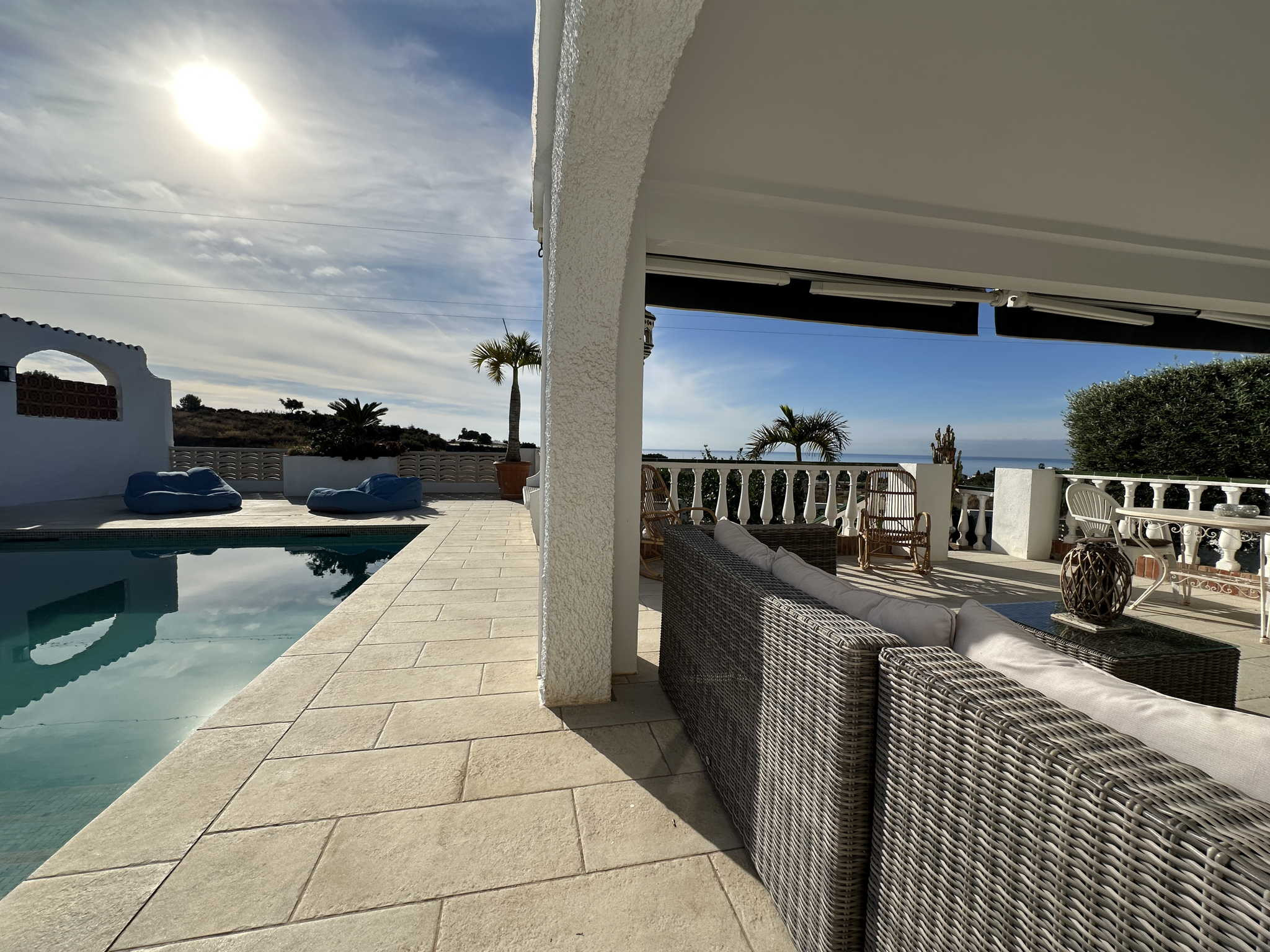 Genießen Sie einen exklusiven Aufenthalt in einer Immobilie, die modernes mediterranes Design mit der Funktionalität verbindet, die Sie sich für Ihren Urlaub wünschen. Die Villa Jackson ist der ideale Ort für alle, die mit Meerblick aufwachen und ihr Frühstück am privatem Pool mit makellosem Design genießen möchten. Die Villa liegt im Wohngebiet Fuente del Badén II und bietet die nötige Ruhe zum Abschalten, aber auch den Komfort, dass der Strand von Burriana und das Zentrum von Nerja nur wenige Autominuten entfernt sind.
