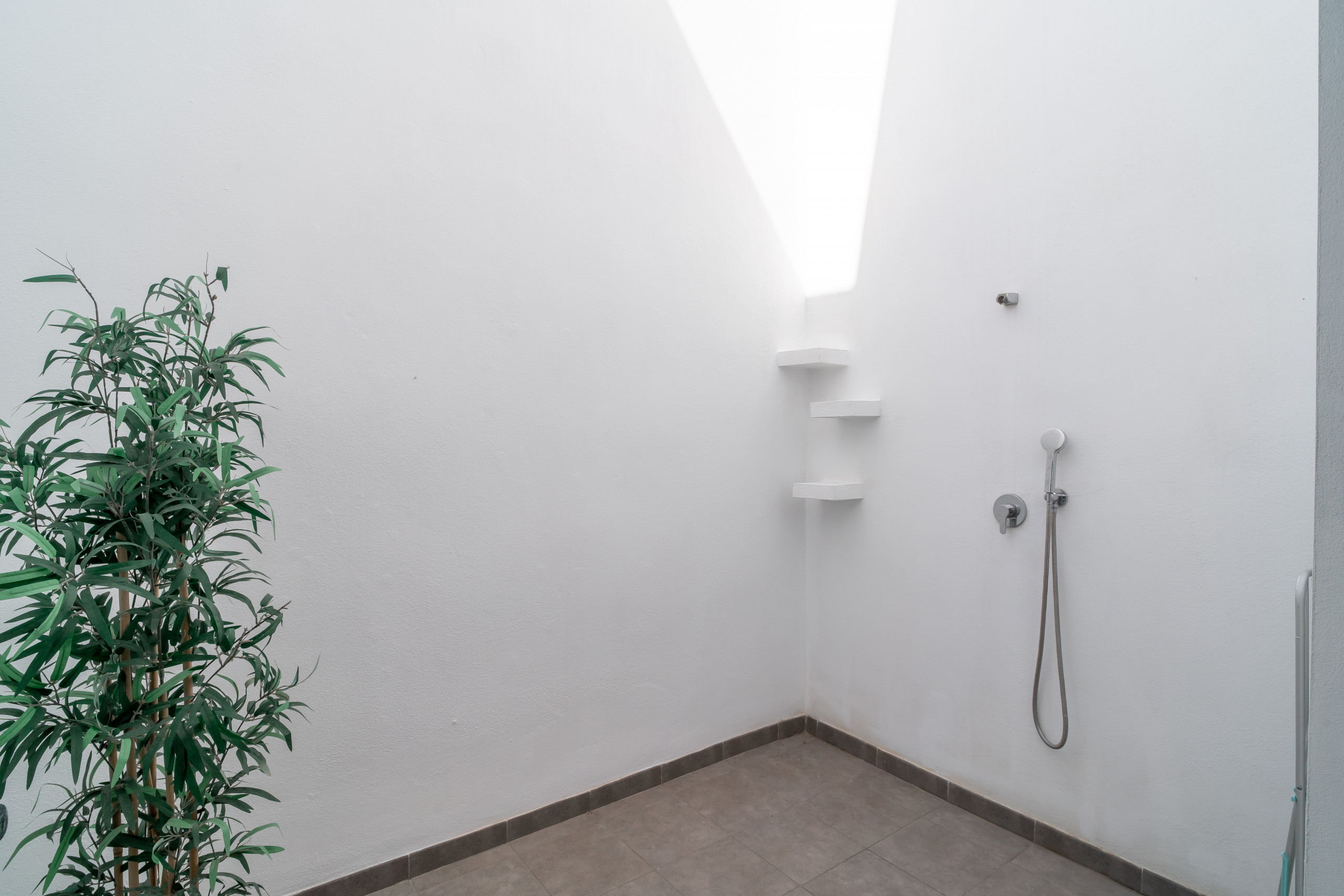 In der Außendusche kannst du das erfrischende Gefühl des Wassers genießen, während du von der Natur und frischer Luft umgeben bist. Es ist die perfekte Art, den Tag zu beginnen oder sich nach einem langen Tag in der Sonne abzukühlen. Die Dusche ist völlig privat, so dass du dich entspannen und dieses Erlebnis in aller Seelenruhe genießen kannst.