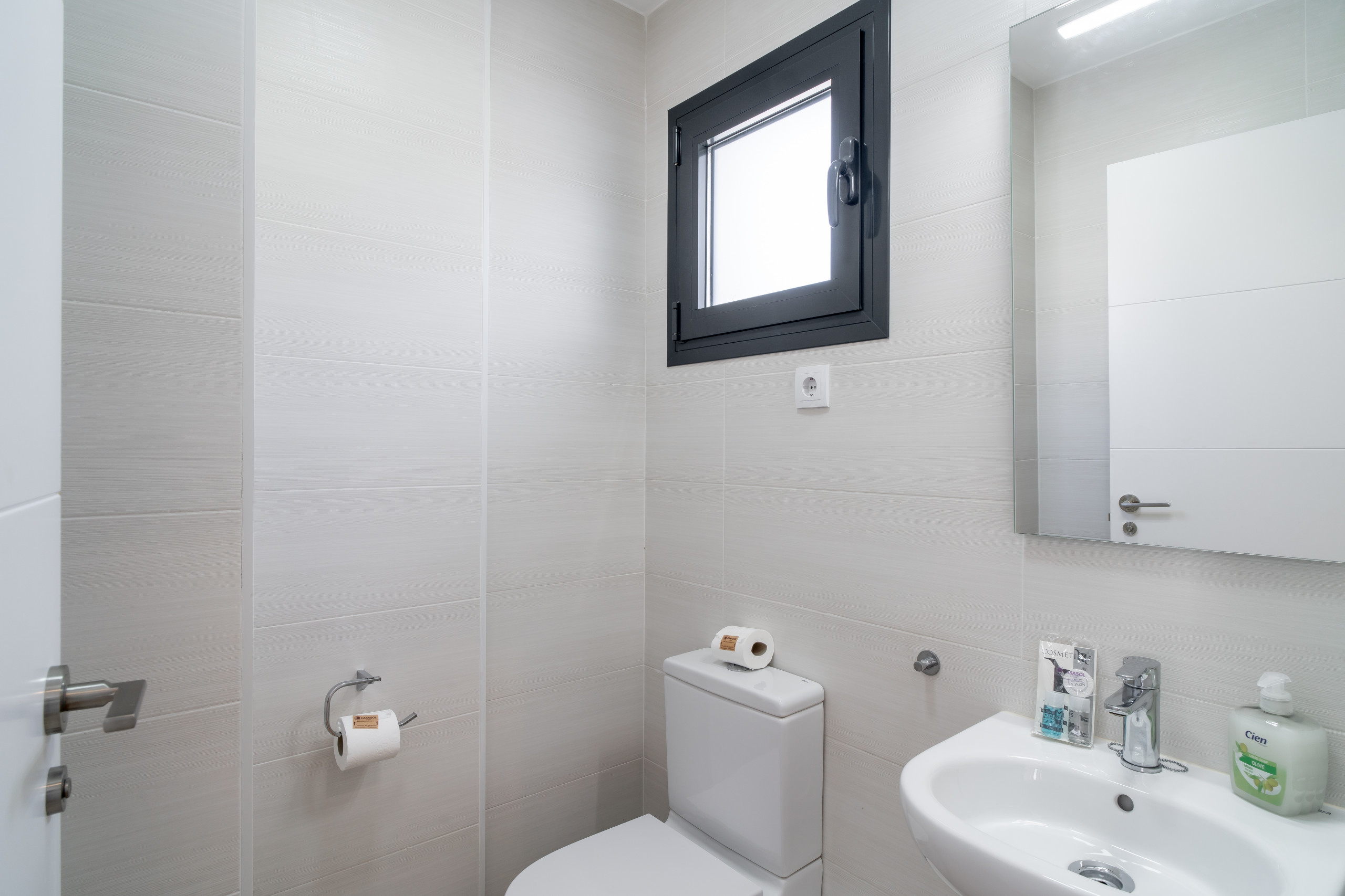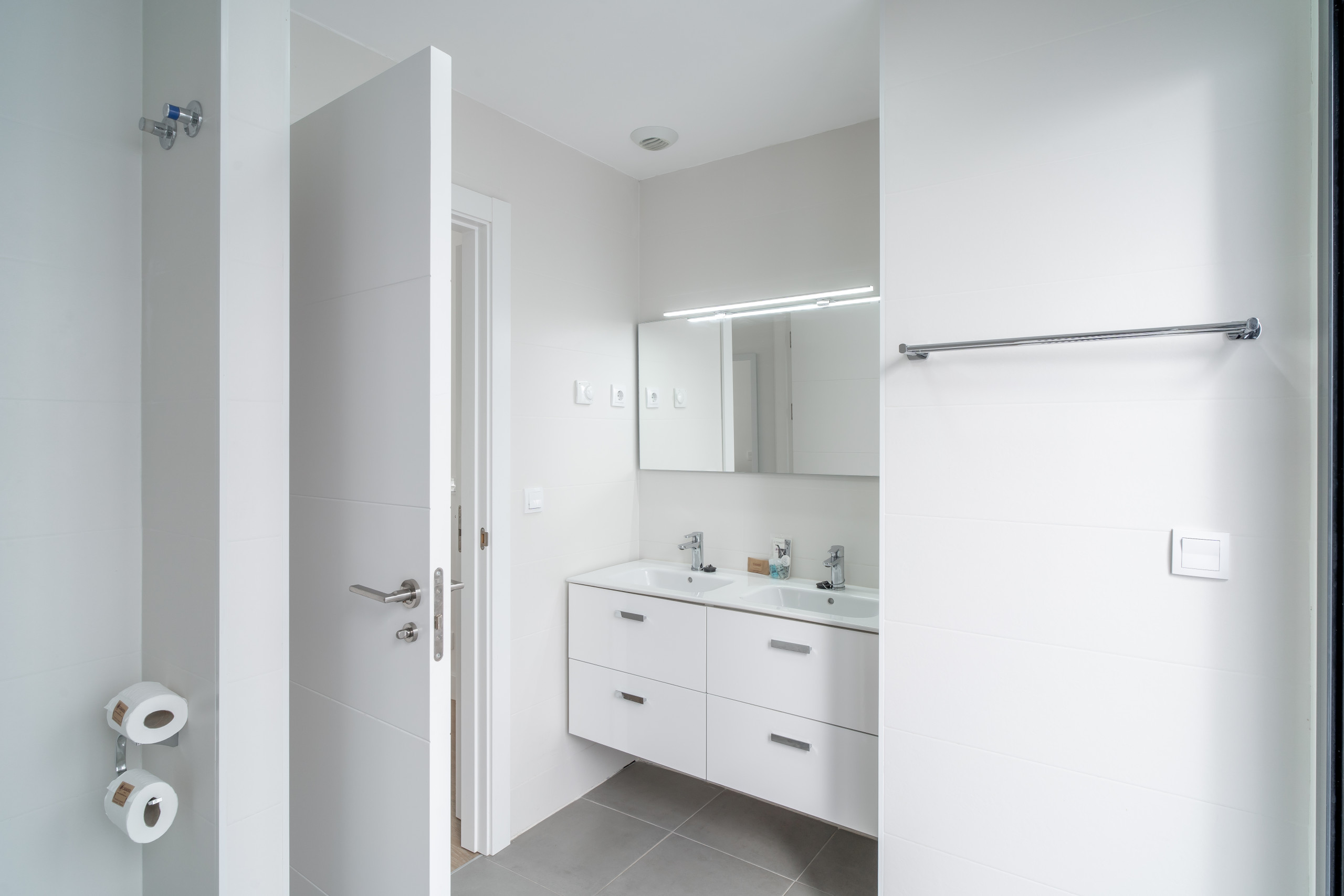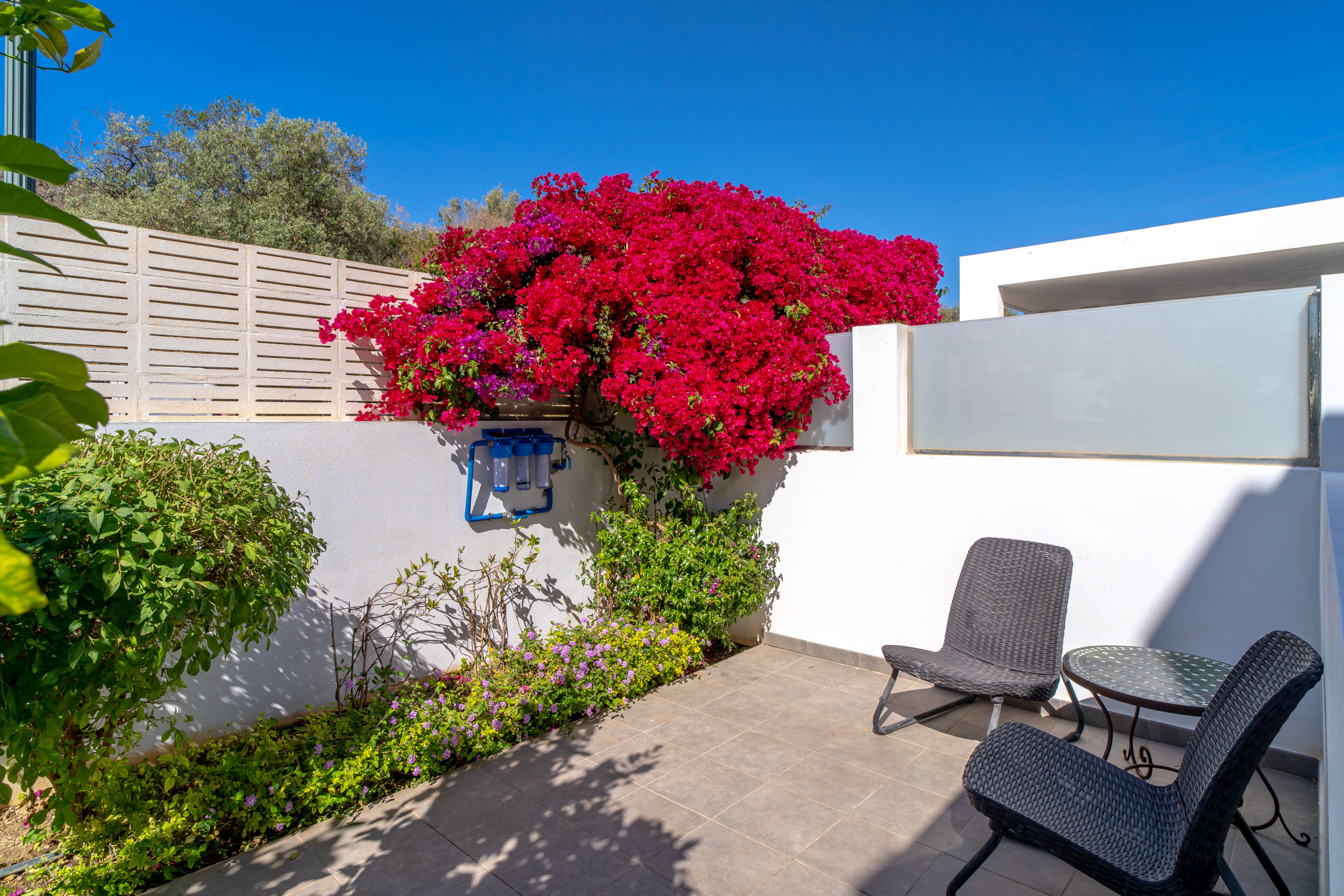 Die Villa erstreckt sich über 2 Etagen. Im Eingangsbereich befinden sich ein modernes Wohnzimmer und eine Küche, die mit den neuesten Geräten ausgestattet ist. Vom Wohnzimmer aus hast du Zugang zu einer Terrasse mit Grill, die über eine Außentreppe in den Garten und den Gemeinschaftspool führt.